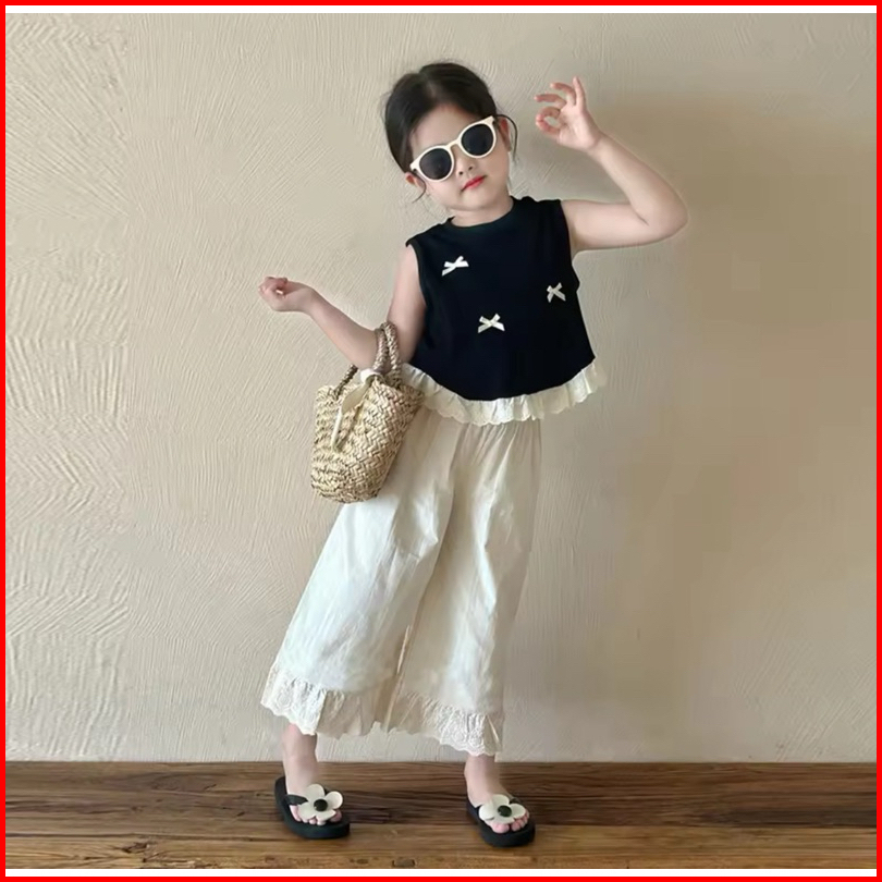 Setelan Anak Perempuan Set Lekbong Motif Renda Pita Celana Panjang Usia 1-5 Tahun Set Anak Cewek Terbaru Dan Kekinian