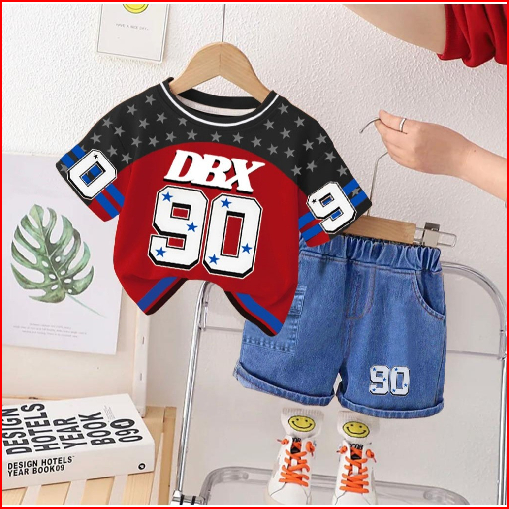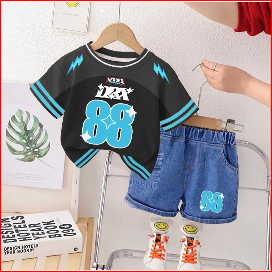 Setelan Jersey Anak Celana Denim Anak Usia 1-6 Tahun Kaos Jersey Anak Laki-laki Motif Viral Dan Kekinian