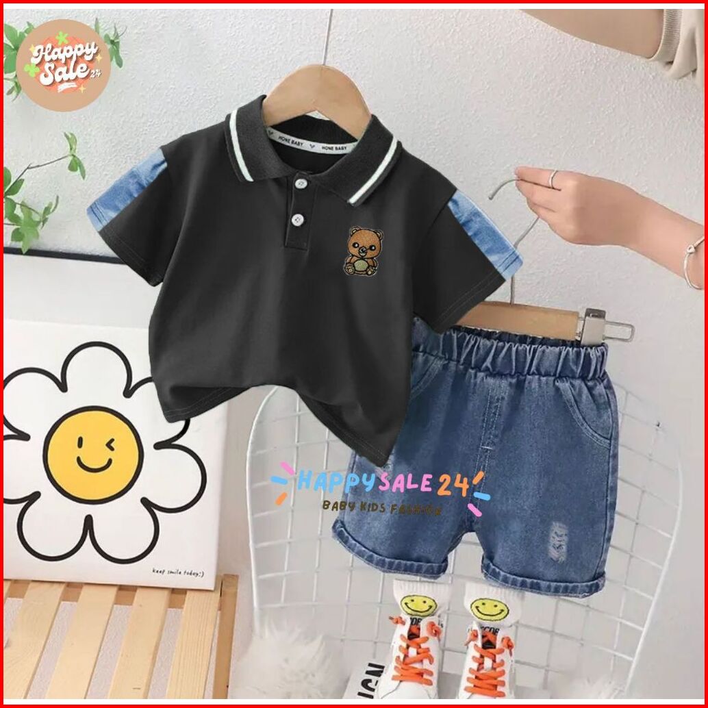 Promo-setelan Anak Kaos Polo Anak Celana Jeans Denim Usia 1-5 Tahun Motif Polo Bear Denim Pakaian Anak Laki Laki Baju An