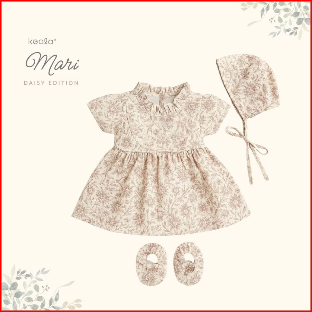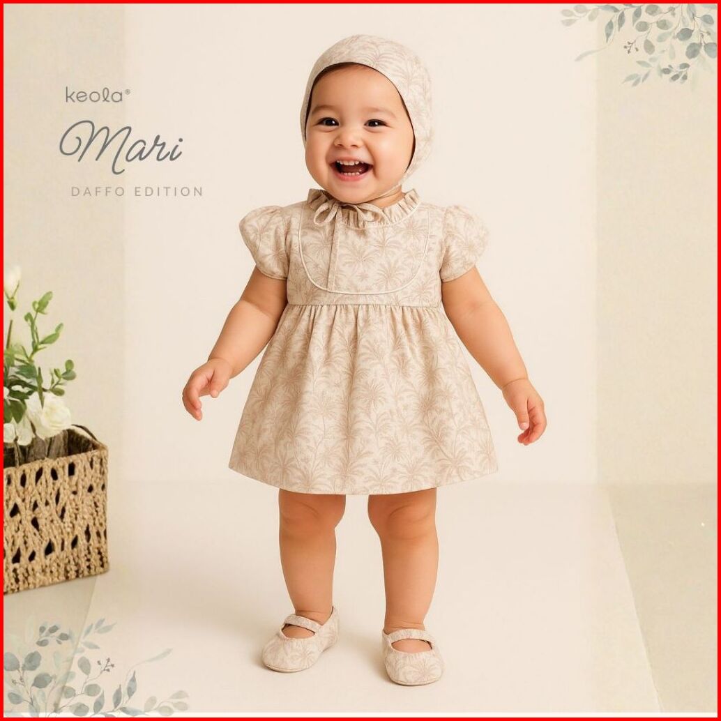 Keola - Mari Babydoll Set Set Dress Baju Anak Bayi Perempuan Baju Topi Sepatu New Born 0 - 6 Bulan