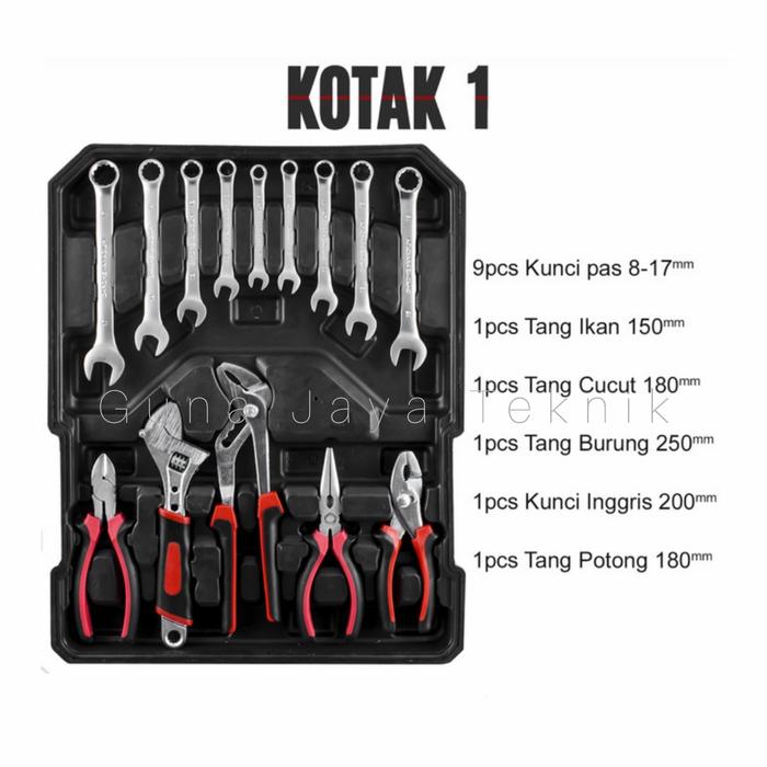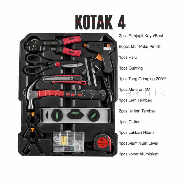 TOOL KITS SET 187 PCS PERKAKAS SET LENGKAP KOPER WARNA ABU ABU