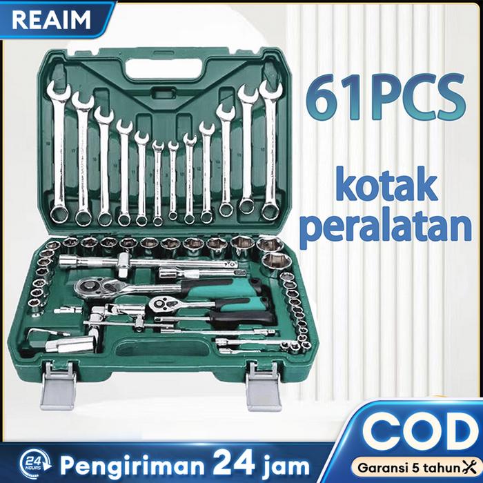 REAIM TOOL KIT SET, ALAT KUNCI SOK SET 61PCS, KUNCI PAS SET 8-19MM, 1/2 KUNCI, MATA SOK LENGKAP, KOMBINASI 1/2, 72 GIGI,
