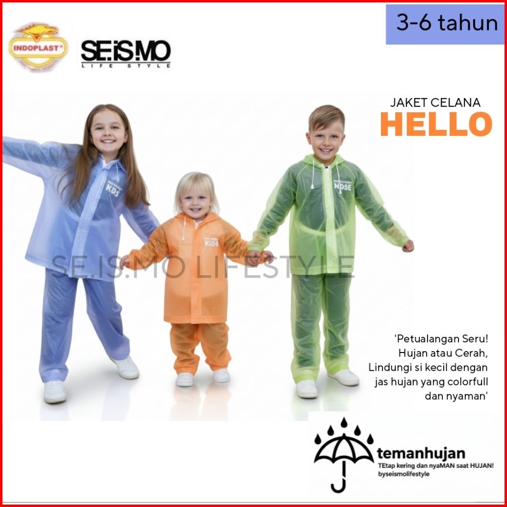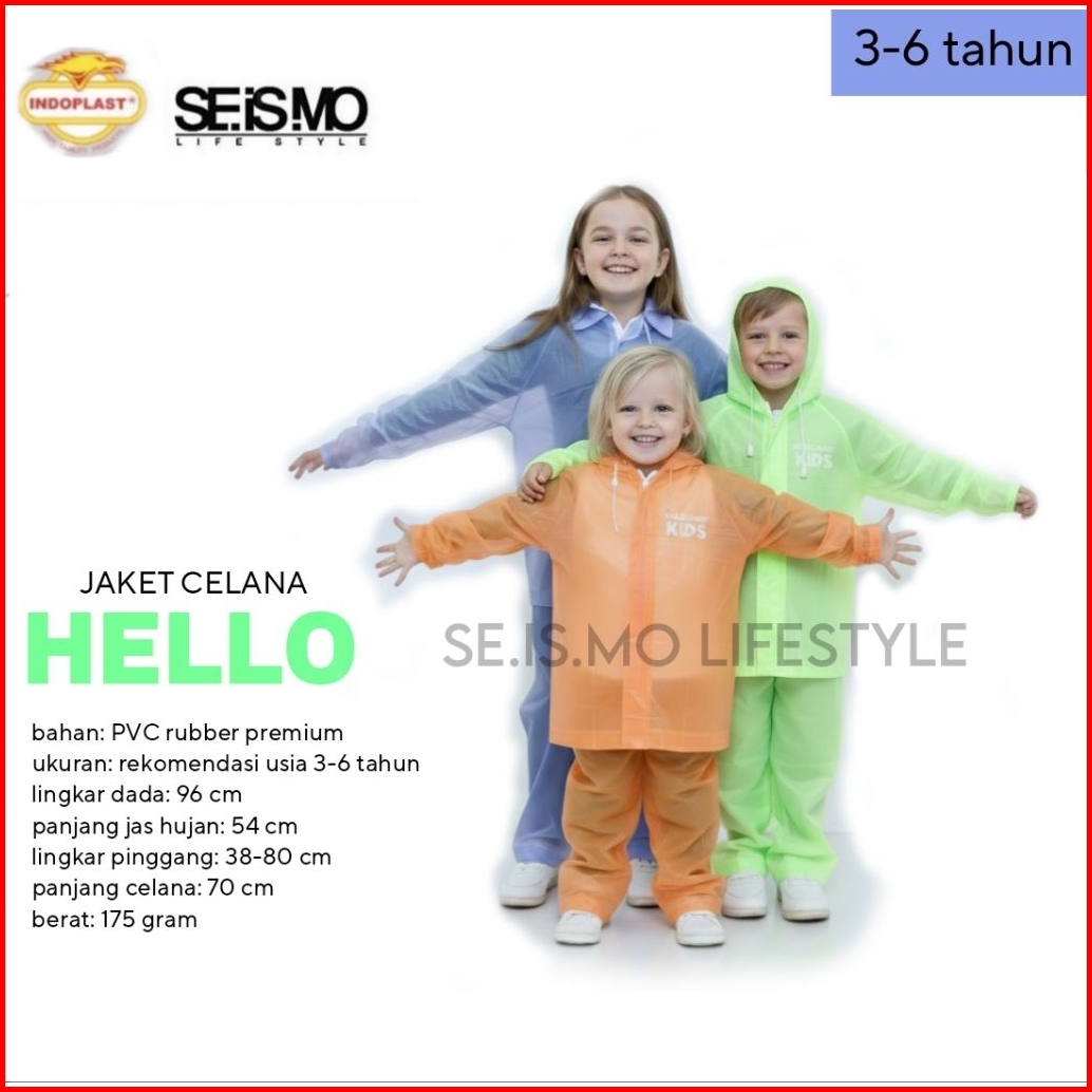 Jas Hujan Anak Hello Kids Setelan Atasan Celana Anak Jas Hujan Anak 3 4 5 6 Tahun