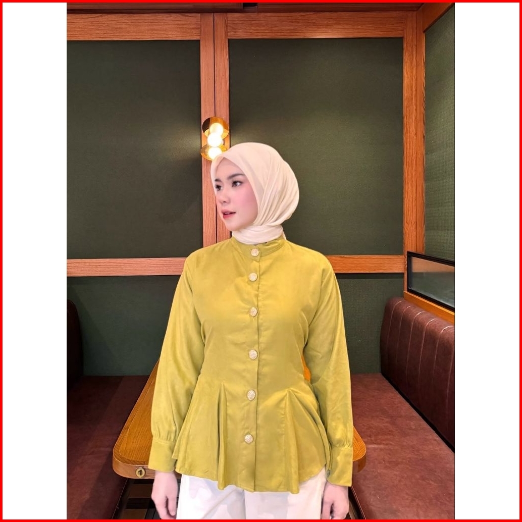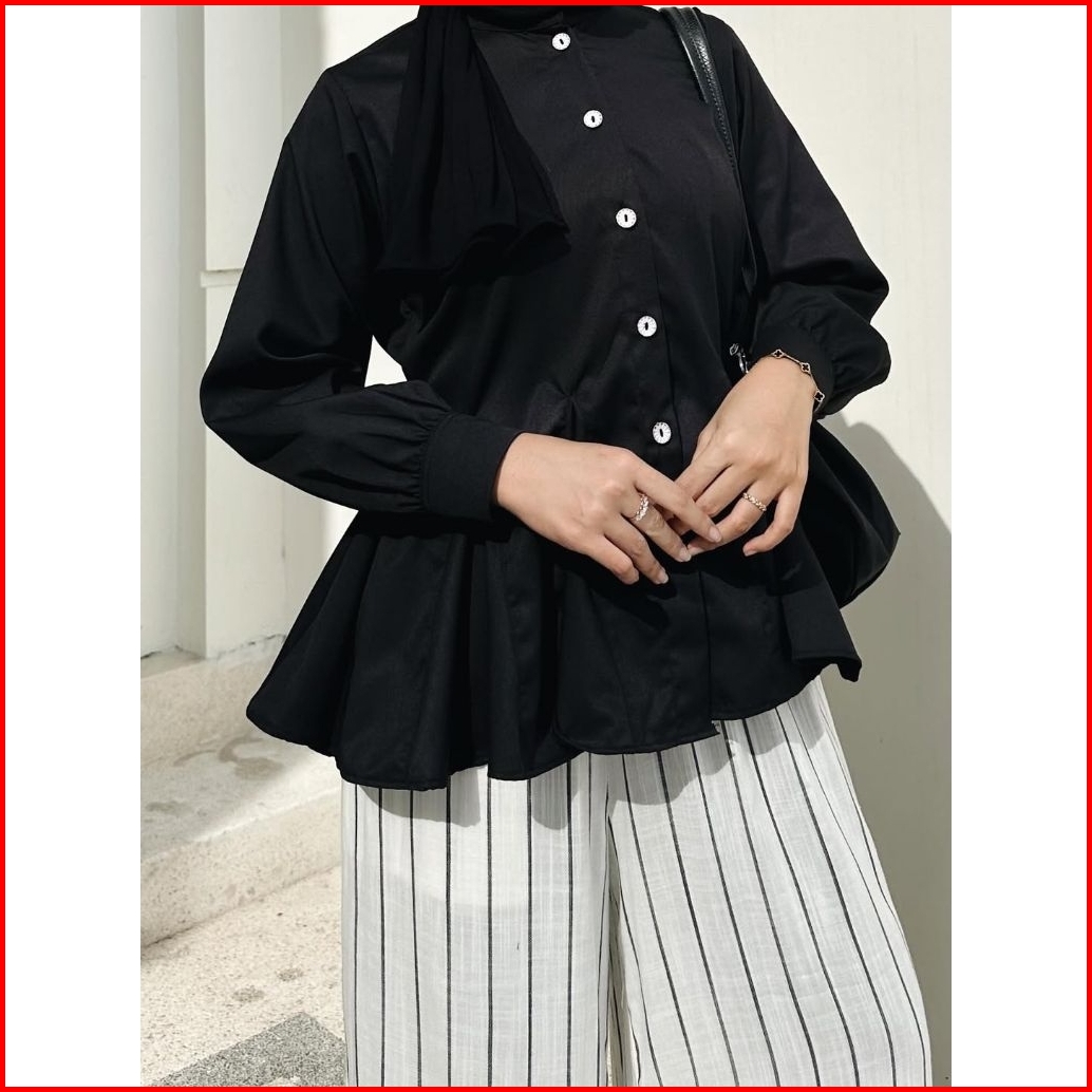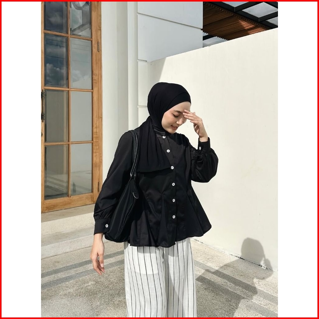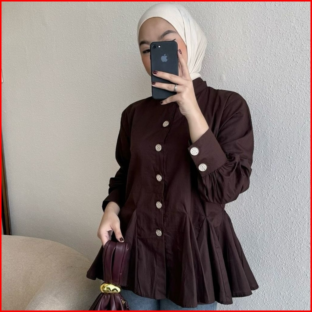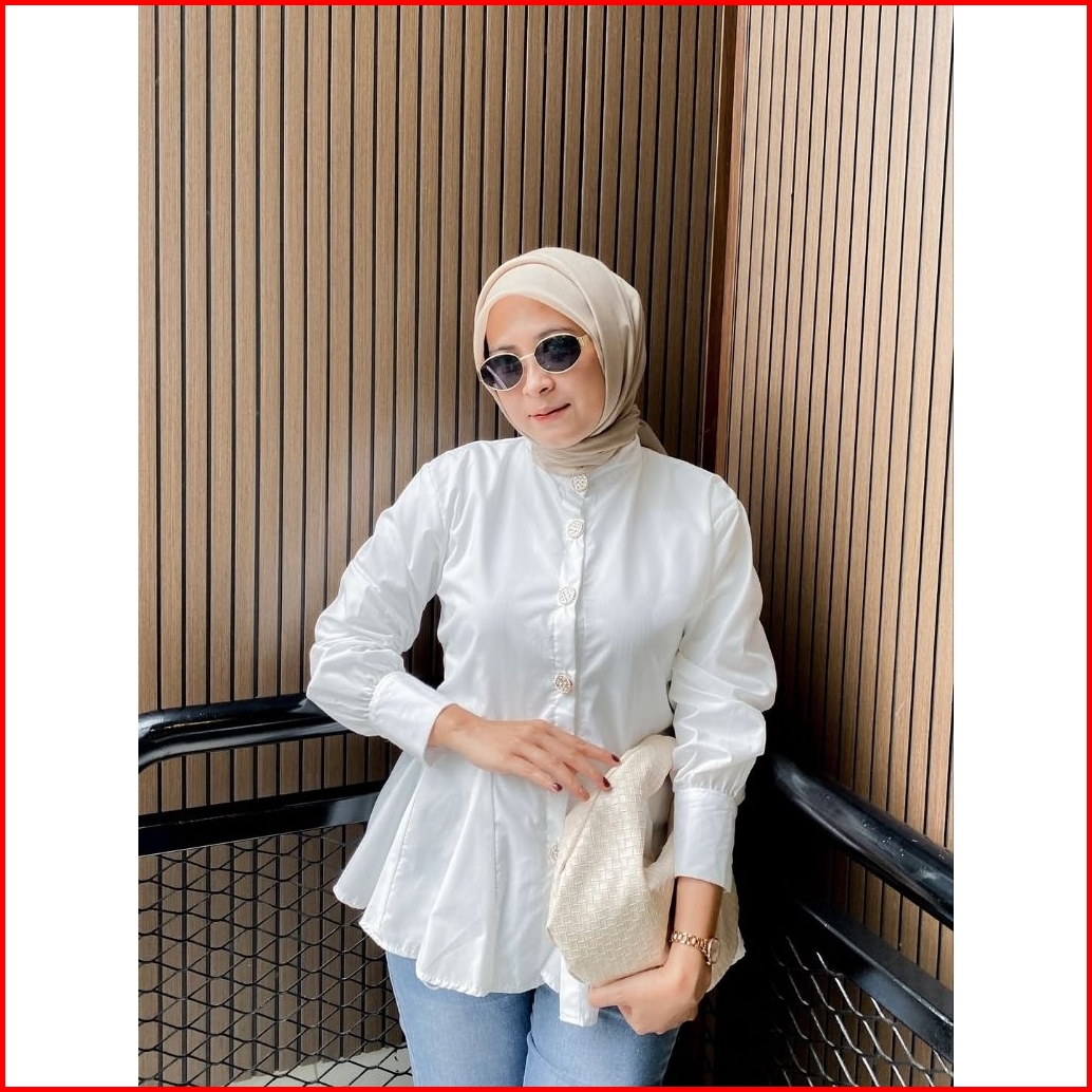 Blouse Katun Polos Queen Atasan Wanita Kancing Mutiara Atasan Remaja Putih Wanita Terbaru Lengan Panjang Kekinian Katun