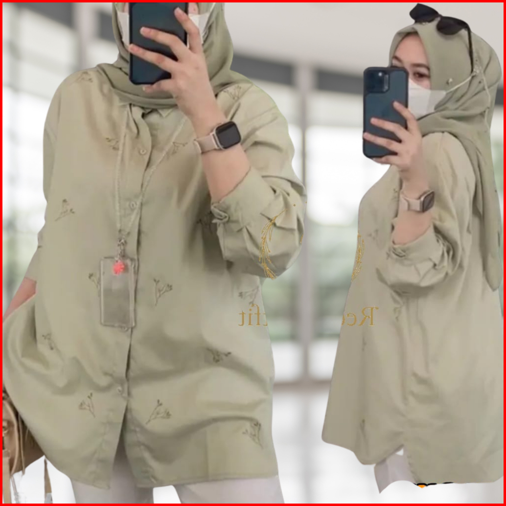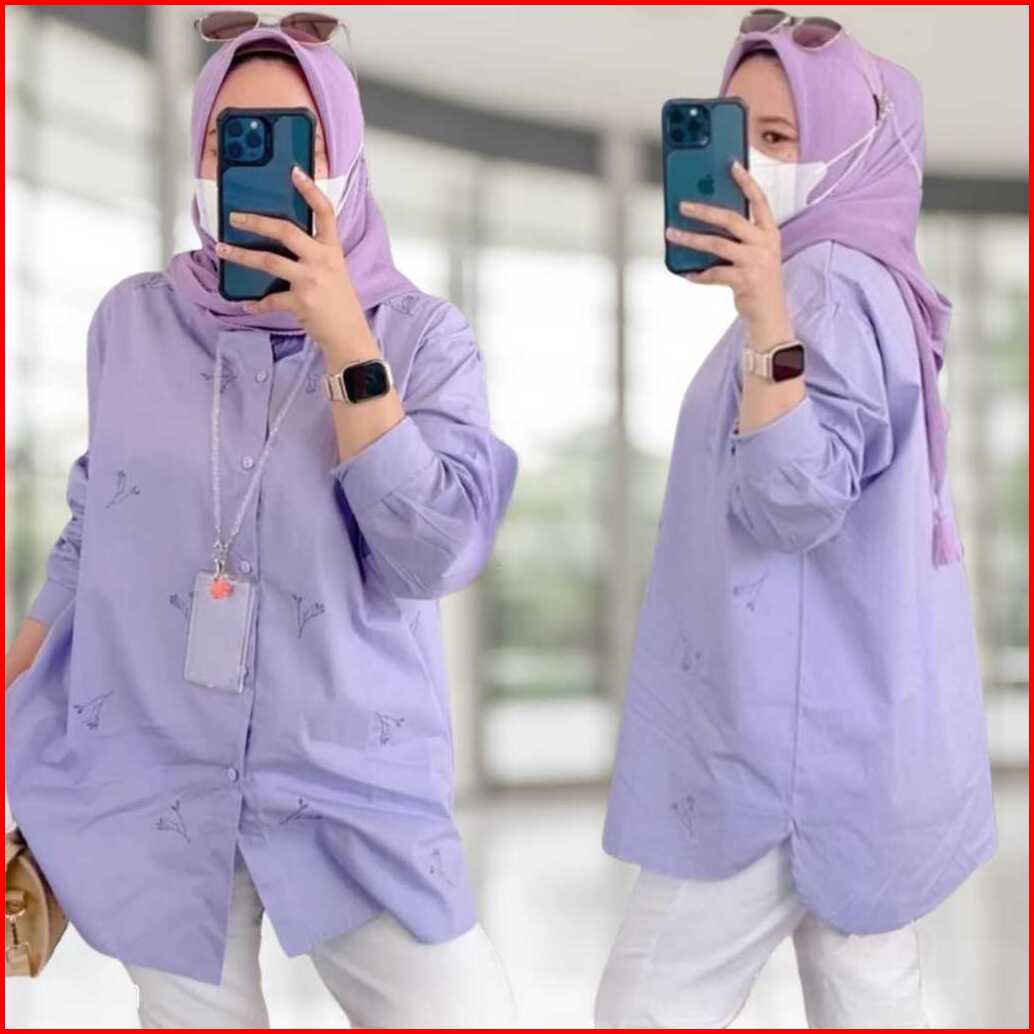 Kemeja Bordir Premium Blouse Style Bunga Poplin Atasan Katun Shirt