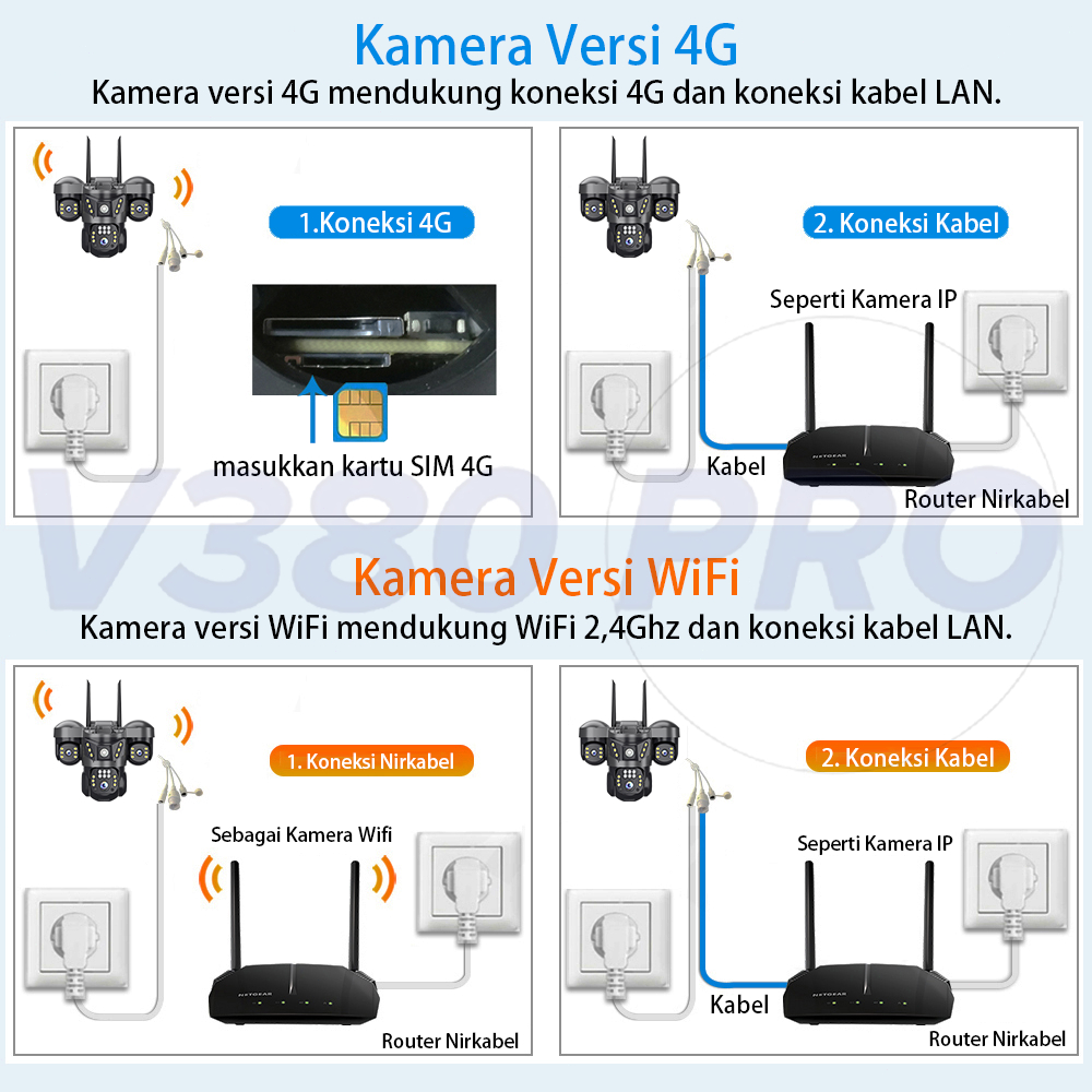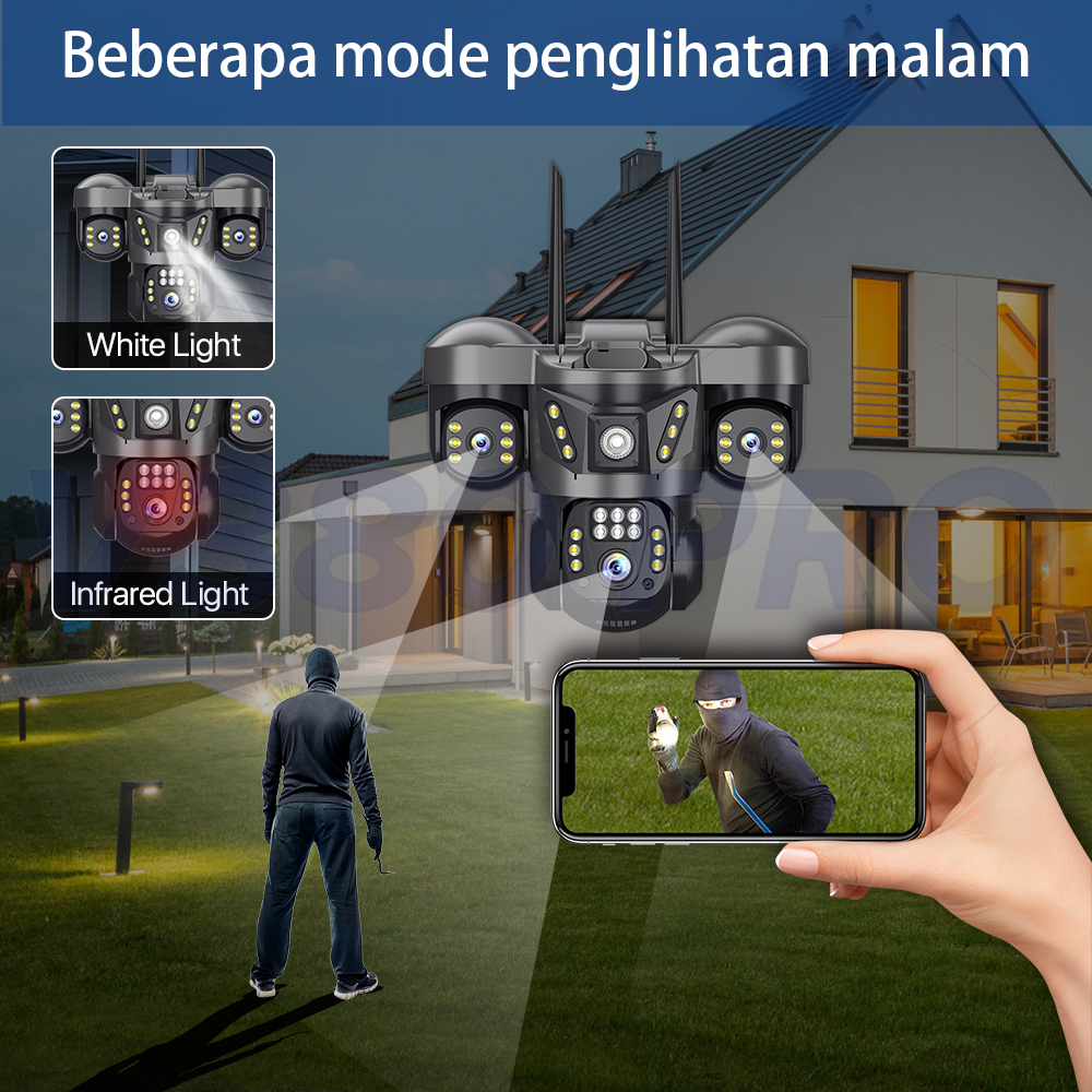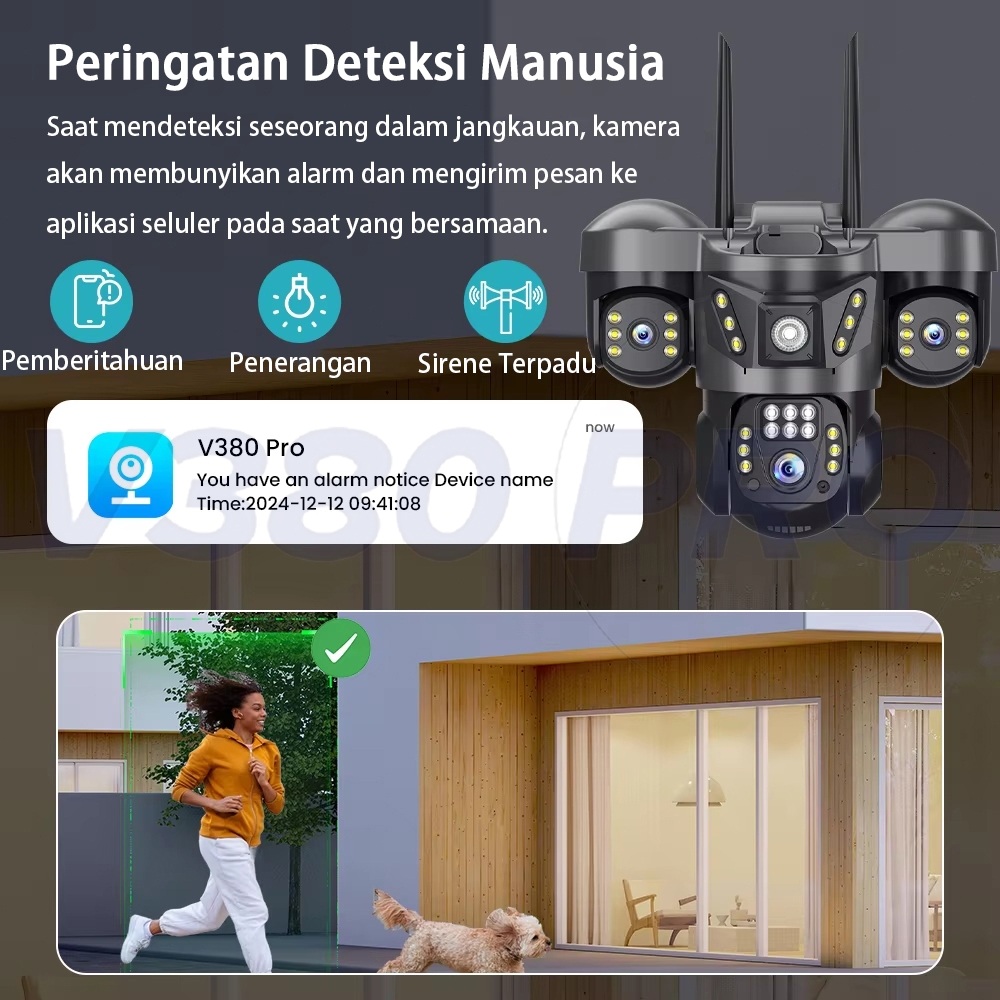 V380 Pro Kamera CCTV 3 Lens 10X Zoom Outdoor IP65 Waterproof Dorongan Informasi Alarm Cerdas