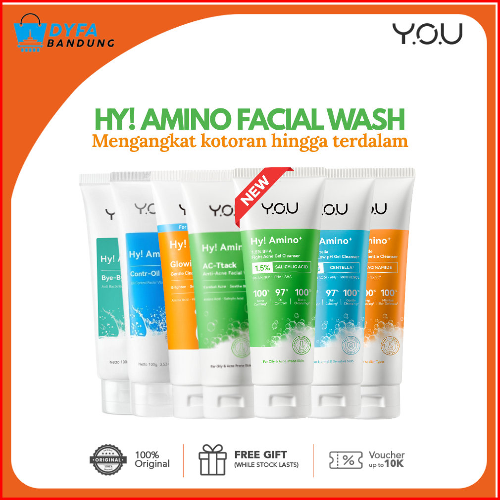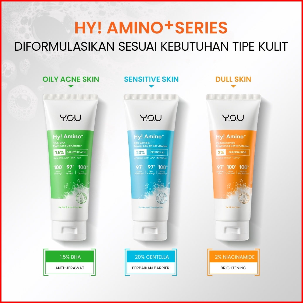 Y.o.u Hy Amino Facial Wash Series Ac-ttack Glo-win Glowing Gentle Contr-oil Bye-byeteria Brightening 2 Niacinamide 1.5 B
