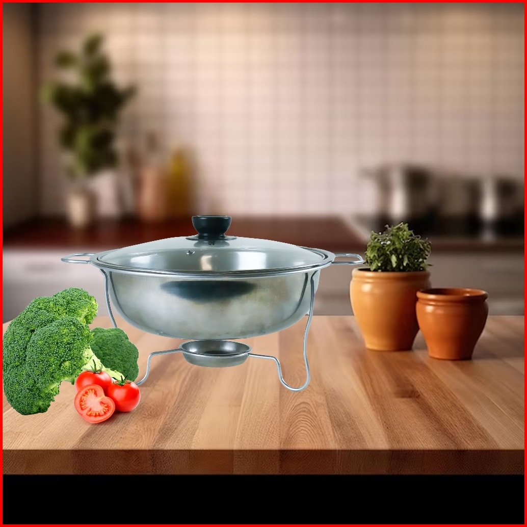 Prasmanan Sop Warmer Stove Stainless Tutup Kaca Tempat Prasmanan Bulat Warmer Stove 28 Cm Round Chafing Dish 28 Cm