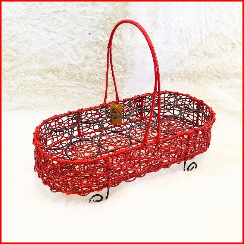Keranjang Air Minum Rotan Sintetis Wadah Tempat Aqua Rangka Besi Kokoh