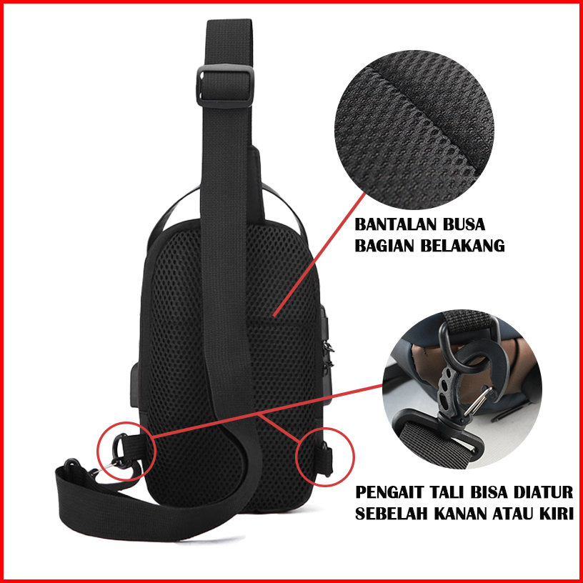 Tas Fashion Pria Multifungsi Tas Selempang Mini 3 In 1 Tsa Lock Sport Usb Waterproof Terbaru - Lw 17