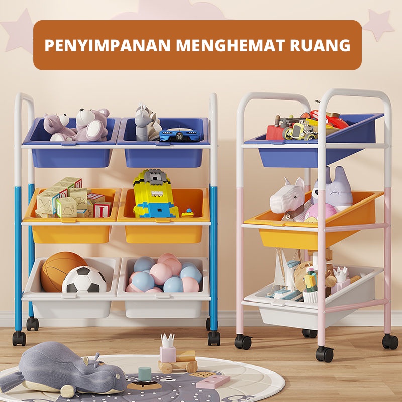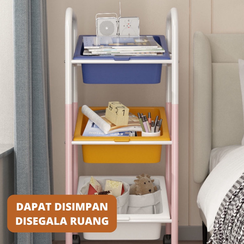 Dejavu Rak Mainan Anak Roda Rak Susun Plastik Kabinet Buku Kamar Tempat Penyimpanan Bumbu Makanan Dapur Serbaguna HRK509