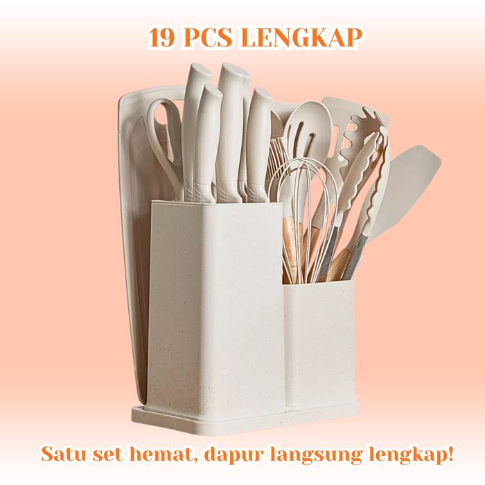 PV88 SPATULA SILIKON 19PCS KITCHEN SET + p15 aw TALENAN SILICONE FREE WADAH - 19IN1 PINK + WADAH