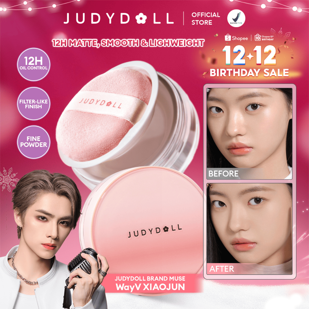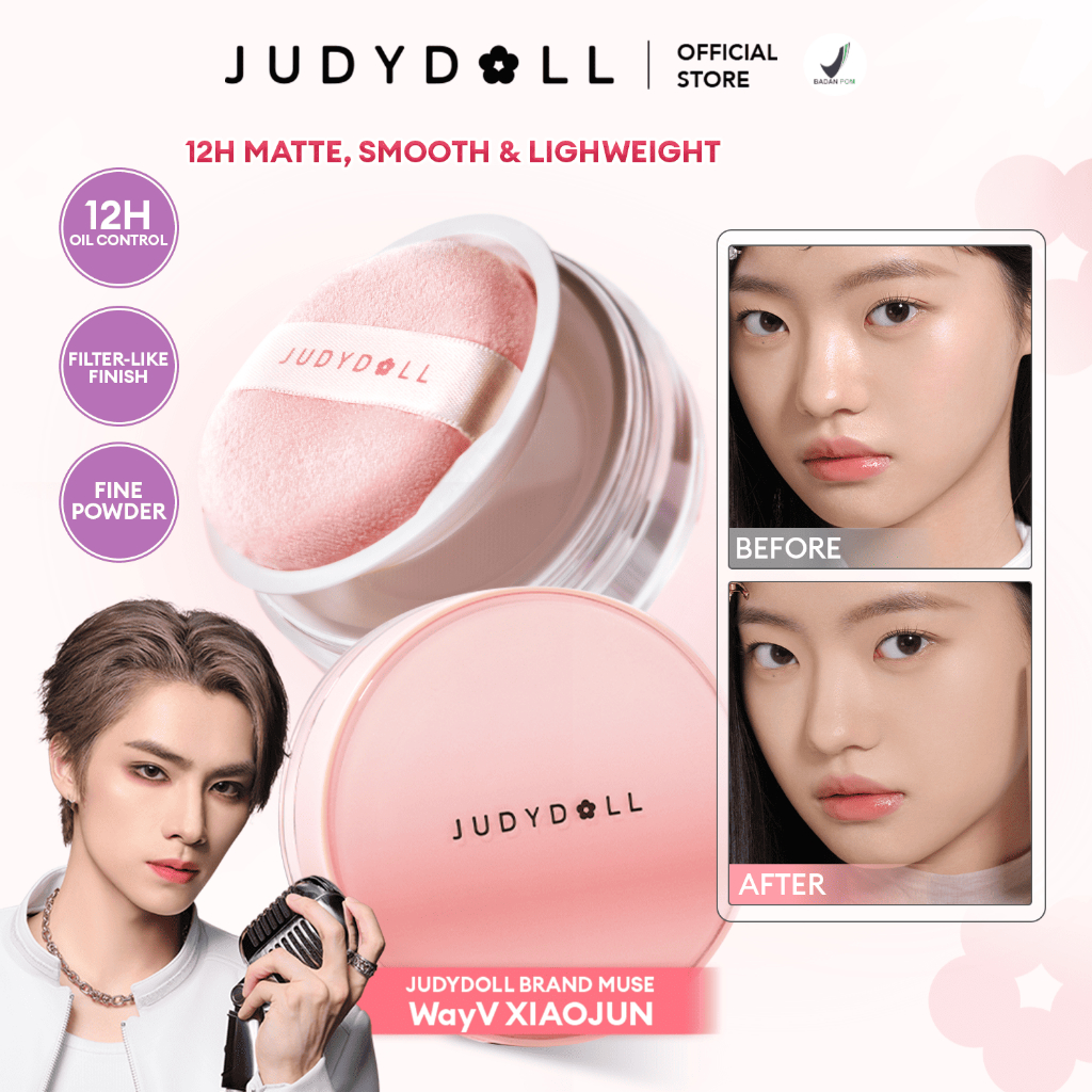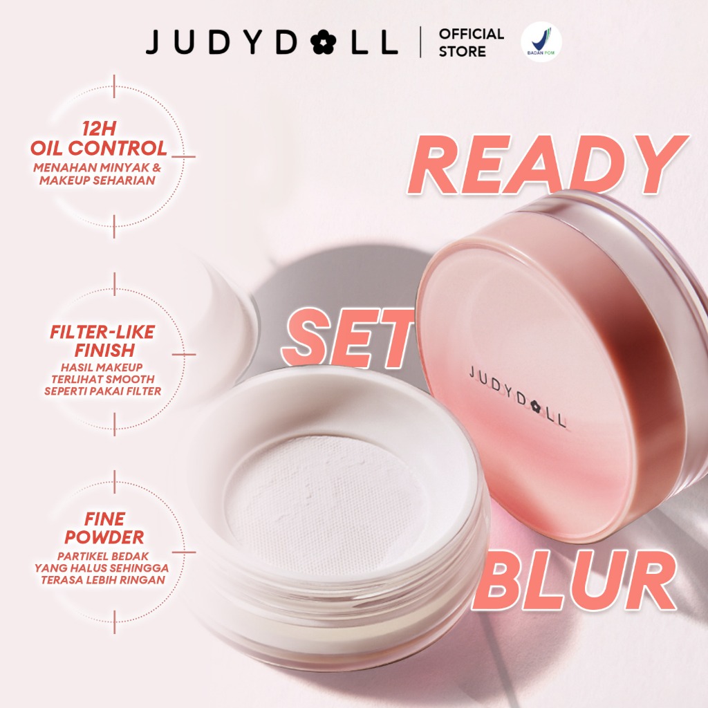 Judydoll Blurring Loose Powder - 8Gr (Bedak Tabur Dengan Hasil Finish Matte & Tahan Lama, Smoothing 12 Jam, Translucent