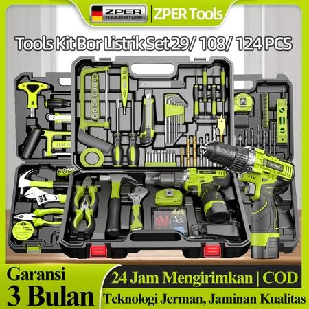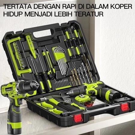 ZPER SET ALAT PERKAKAS & BOR BATERAI CORDLESS TANG OBENG PALU KUNCI PAS TOOLKIT 124 IN1 PCS ZP027 BOREK LASKAR PELANGI A
