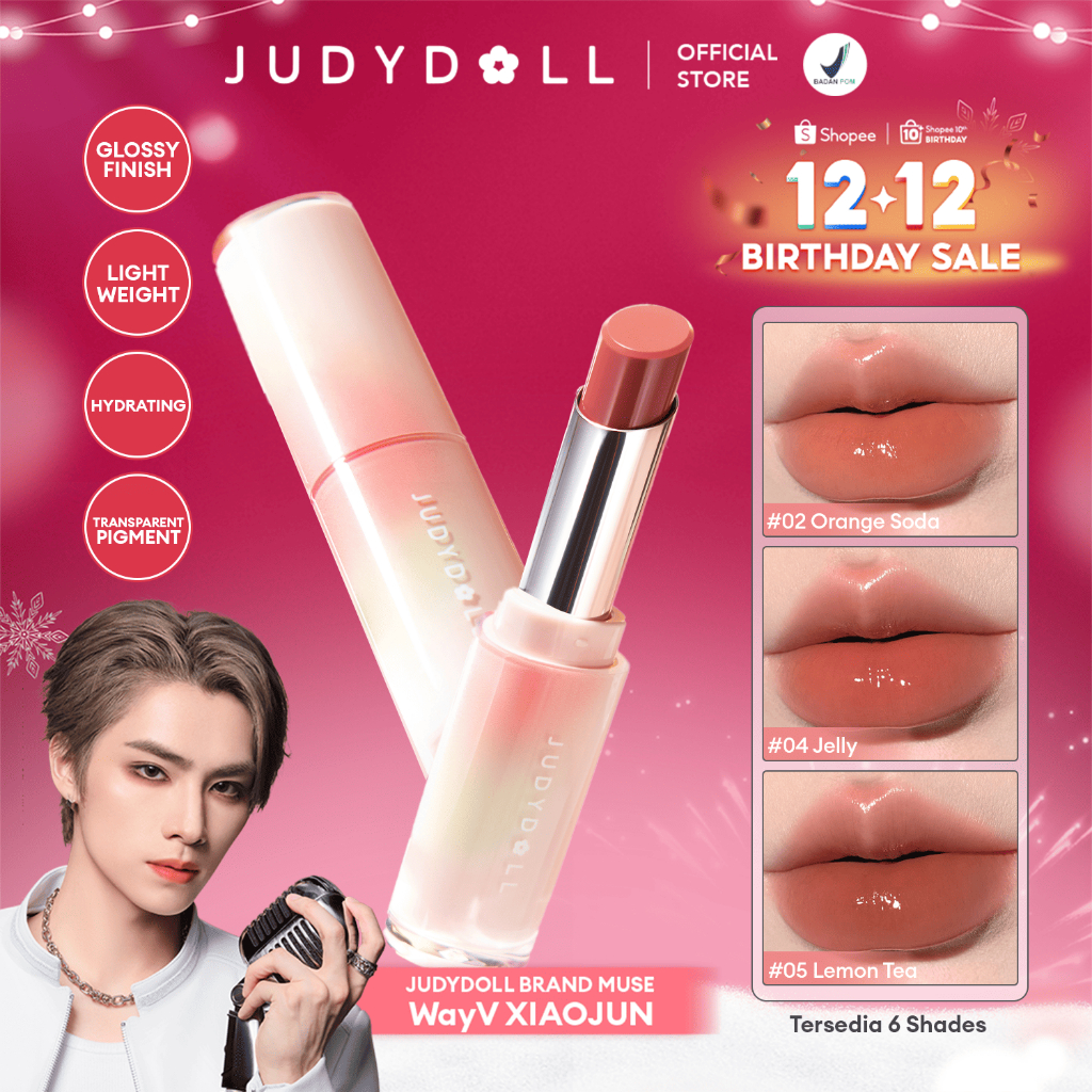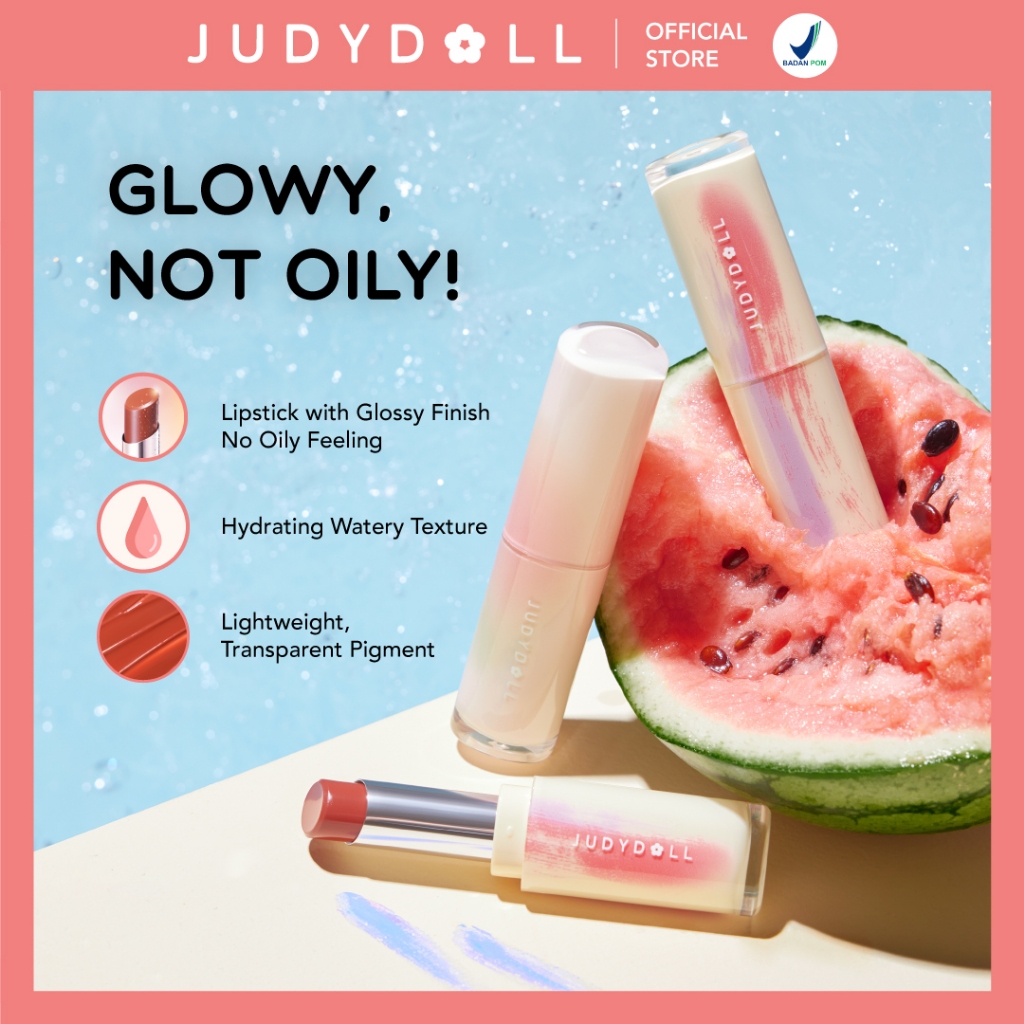 Judydoll Watery Glow Lipstick - 9Gr (Best Of 2 Eras Lipstick Gloss, Pigmented, Formula Ringan, Non Oily Untuk Hasil Bibi