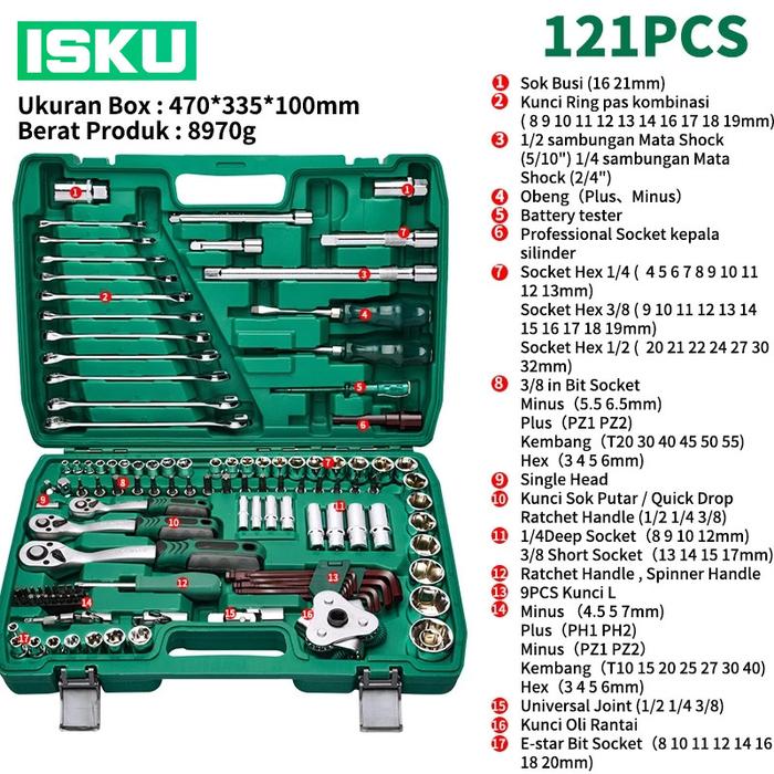 ISKU TOOL KIT SET 121PCS KUNCI SHOCK SET 121PCS/82PCS/61PCS/53PCS/37PCS 72GIGI KUNCI RING PAS SET LENGKAP BENGKEL MOTOR/