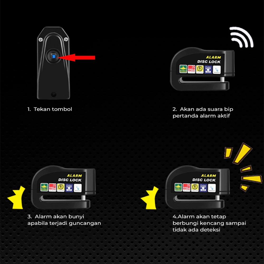 Alarm Gembok Motor Disc Lock Anti Maling Waterproof Bahan Metal Pengunci Rem Cakram Keamanan Motor