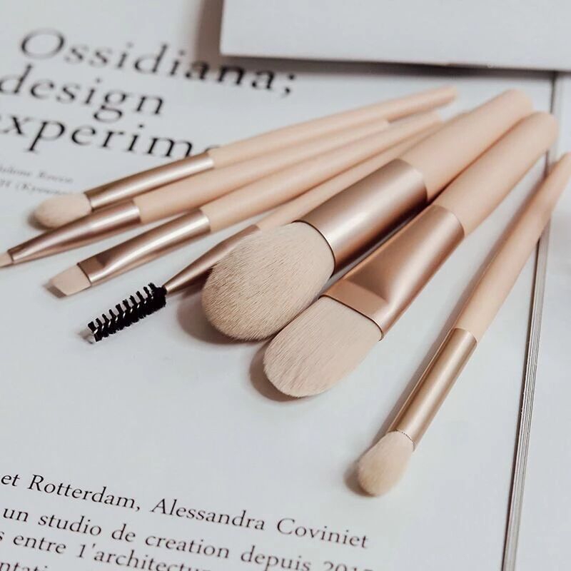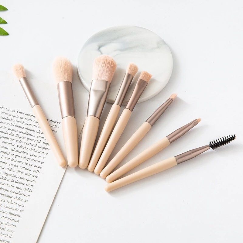 Kuas Make Up 8 In 1 Free Pouch Make Up Brush 8Pcs Mini Travel Cosmetic Brush Make Up Tools Set Kuas Make Up 8 In 1 / Mak