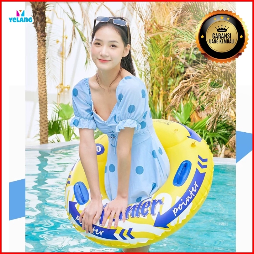 Pelampung Ban Renang Anak Bulat Ban Renang Dewasa Motif Warna Biru Kuning Pvc 100cm Bahan Tebal