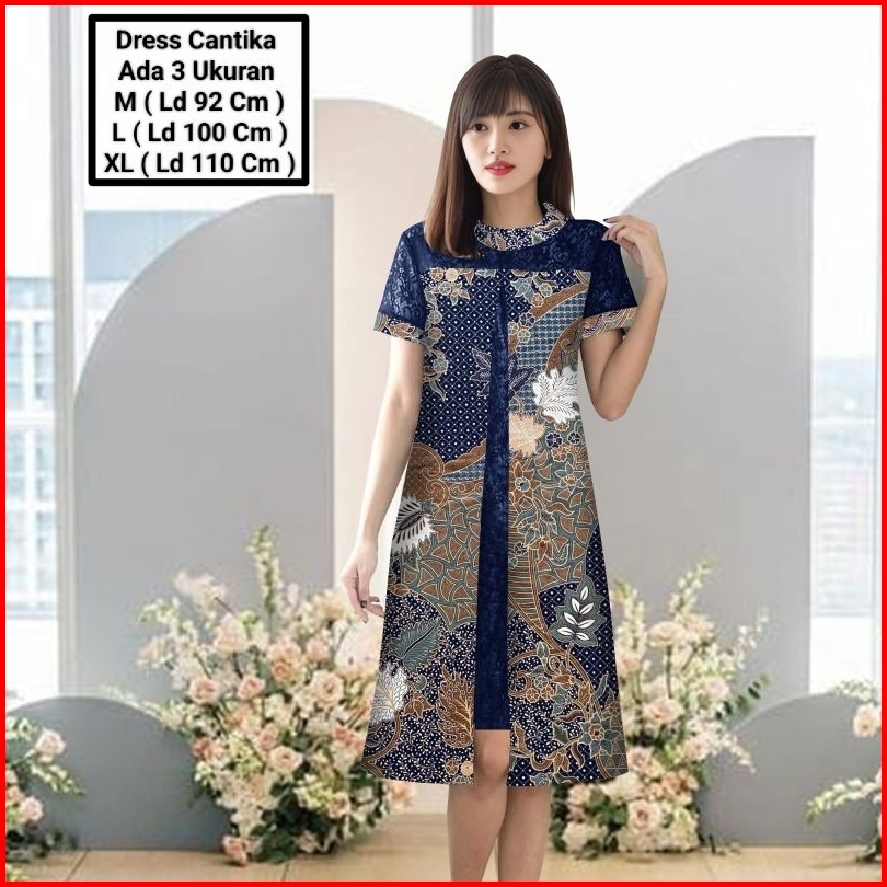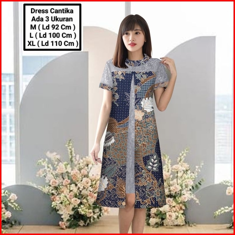 Dress Midi Model Terbaru Matt Batik Kombinasi Brokat Mutiara Modern Elegant Cocok Untuk Pesta Kondangan Natal Dress Cant