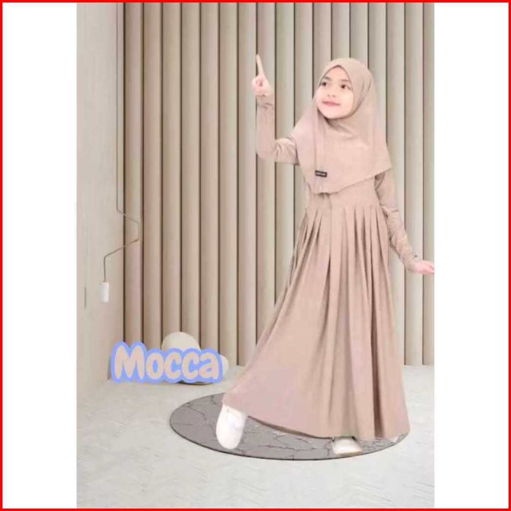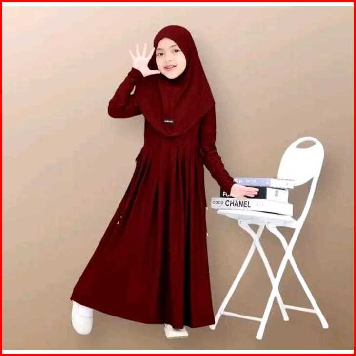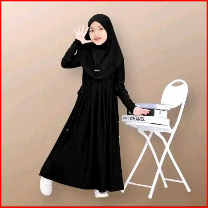 Gamis Abaya Anak Inara Serut Pinggang Usia 0-9 Tahun Bahan Jersey Lembut Dan Adem Free Hijab Muslim Panjang Nyaman