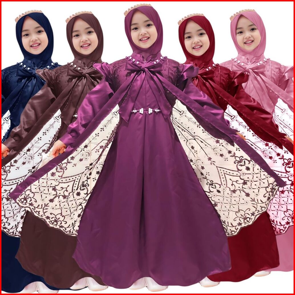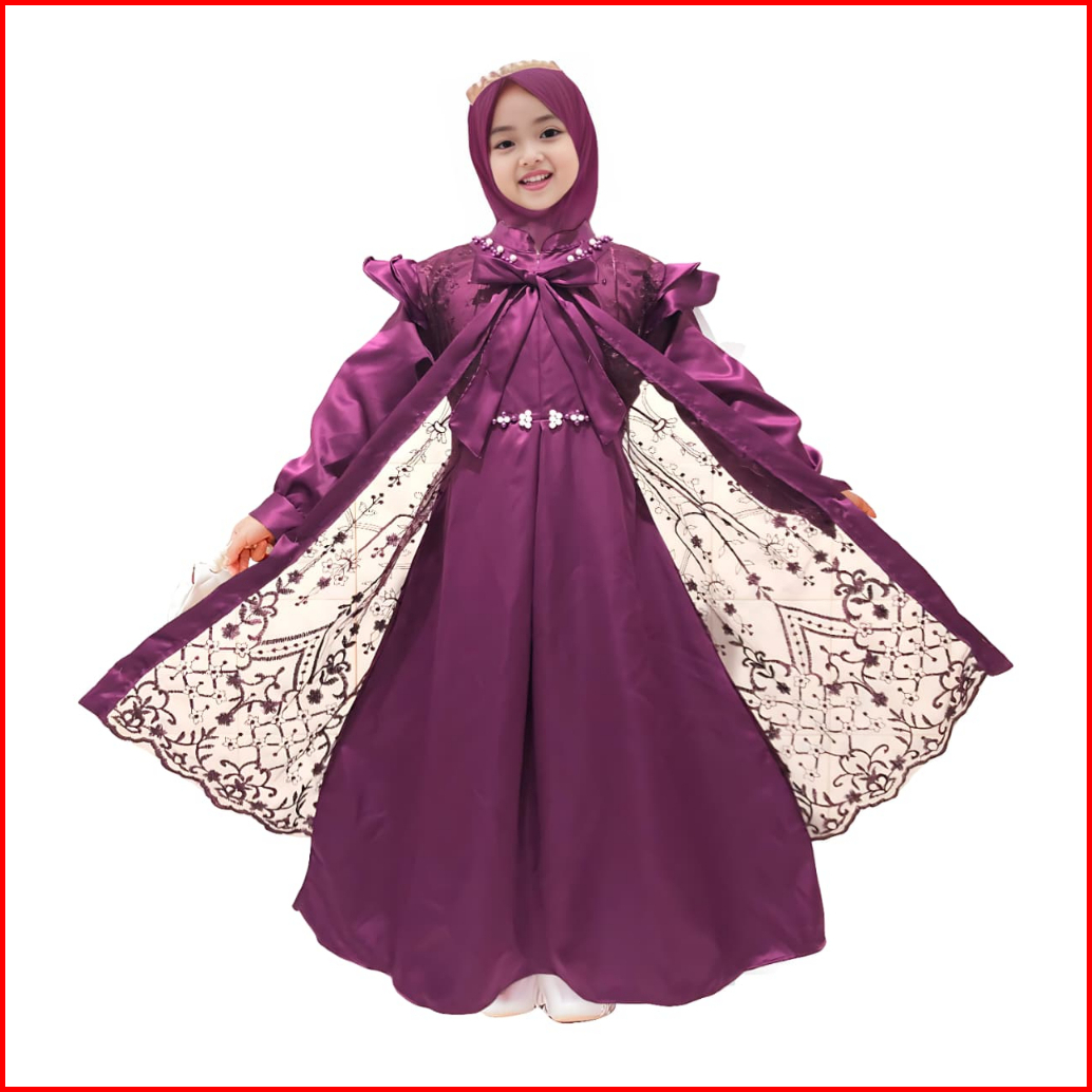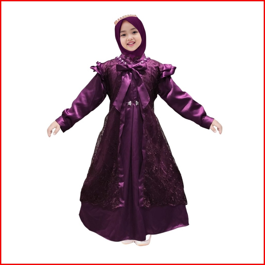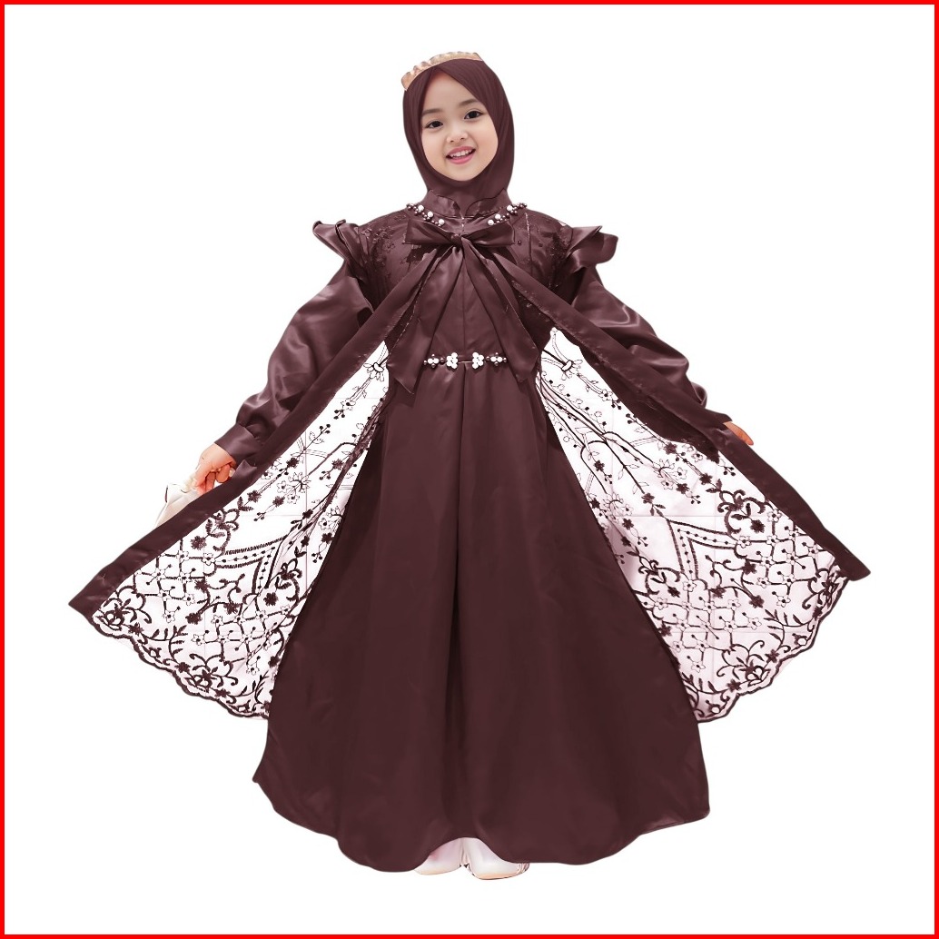 Baju Gamis Anak Mahogany Syafira 2-13thn Baju Gamis Pesta Anak Perempuan Gamis Anak Burgundy