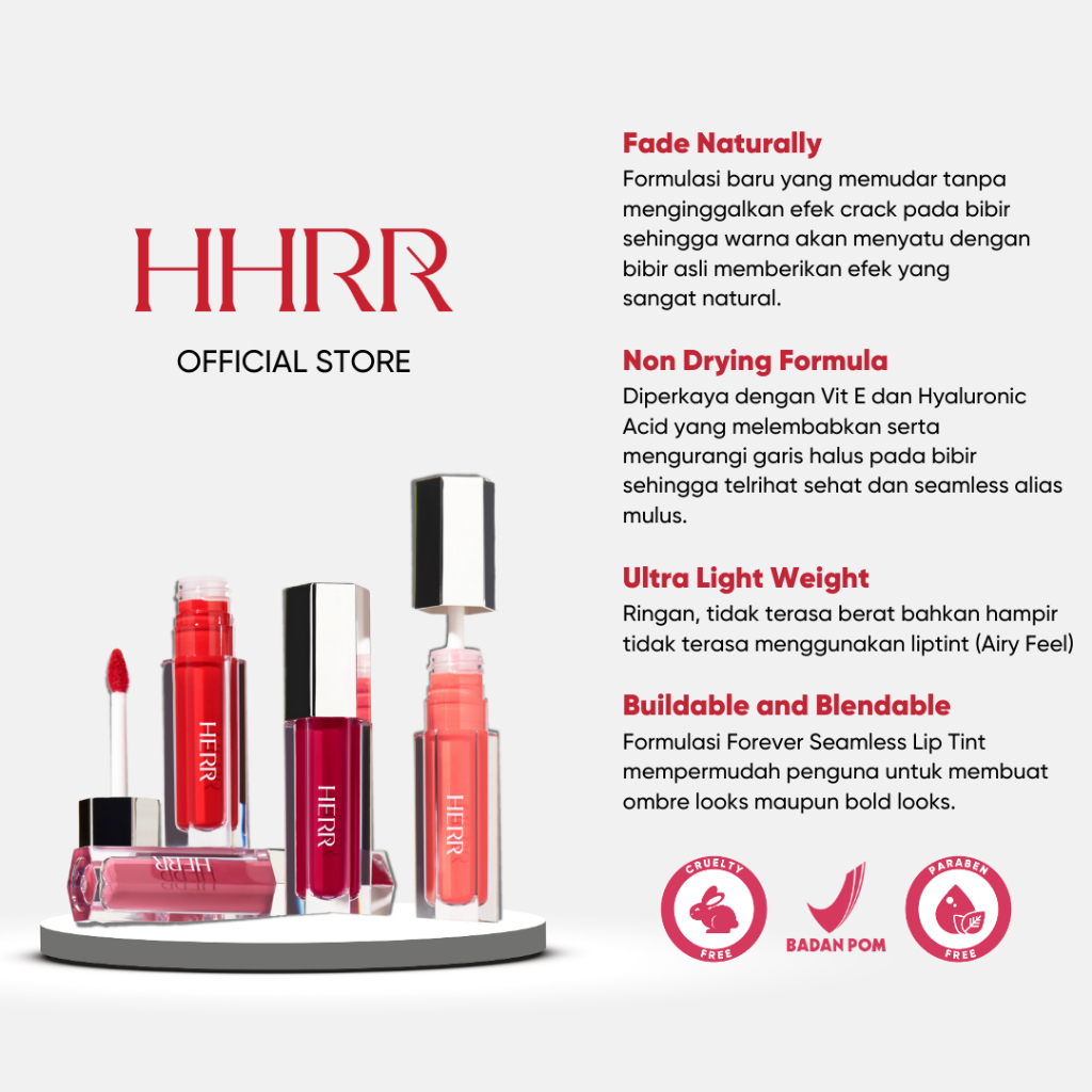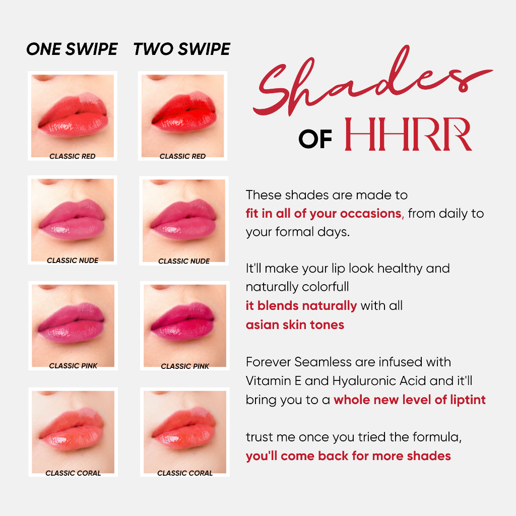 Hhrr - Forever Seamless Lip Tint - Classic Coral | Anti Bibir Kering | Ultra Moist | Melembabkan | Ringan | Natural Colo