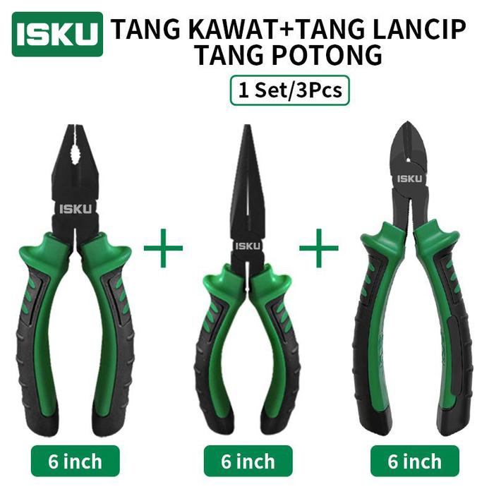 ISKU TANG KOMBINASI 3 PCS SET TANG KAWAT TANG LANCIP TANG POTONG 6 INCH 55# STEEL+PVC HANDLE/TANG COMBINATION