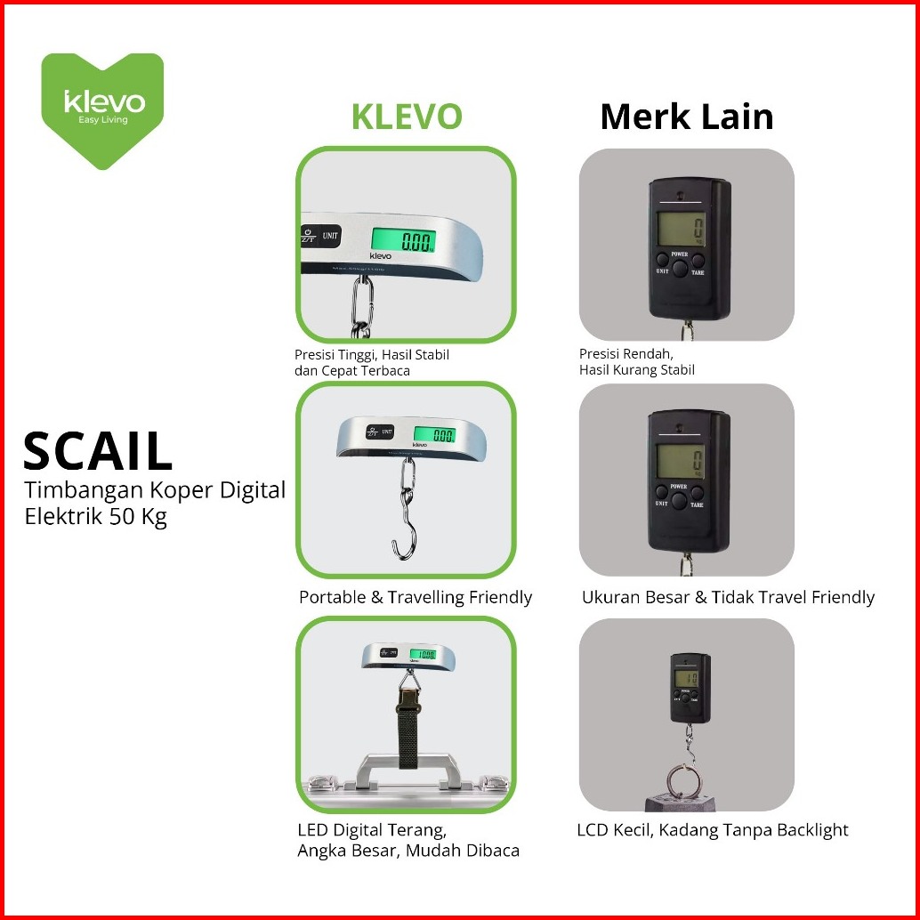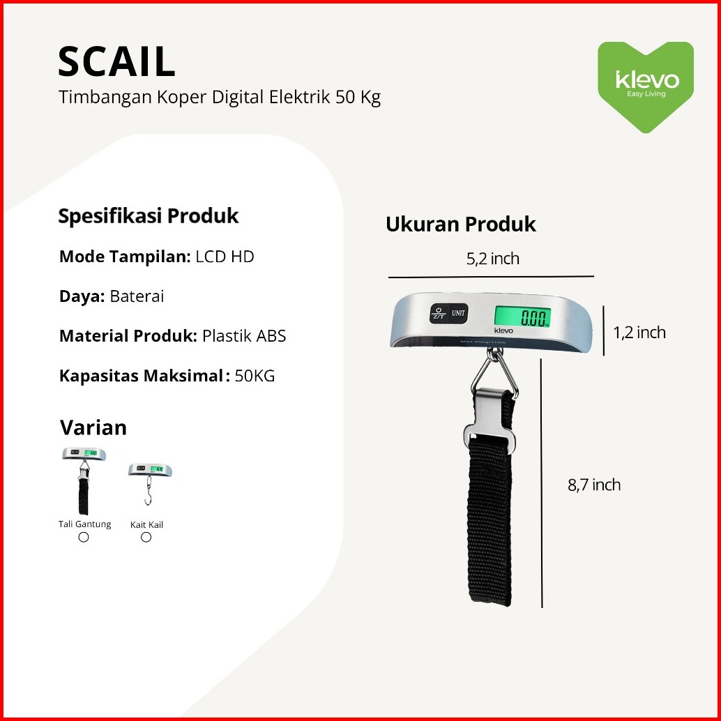 Klevo Scail Timbangan Koper Digital Elektrik 50 Kg Akurat Led Display Travel Friendly