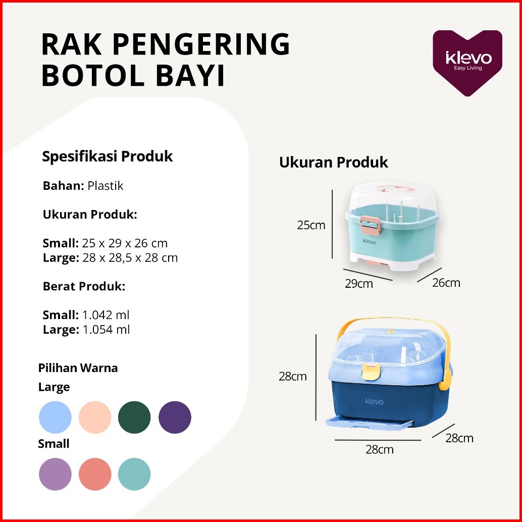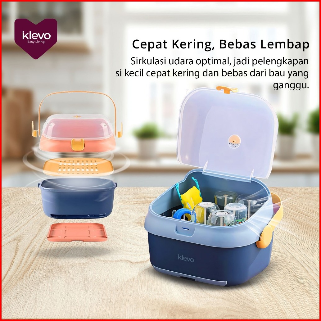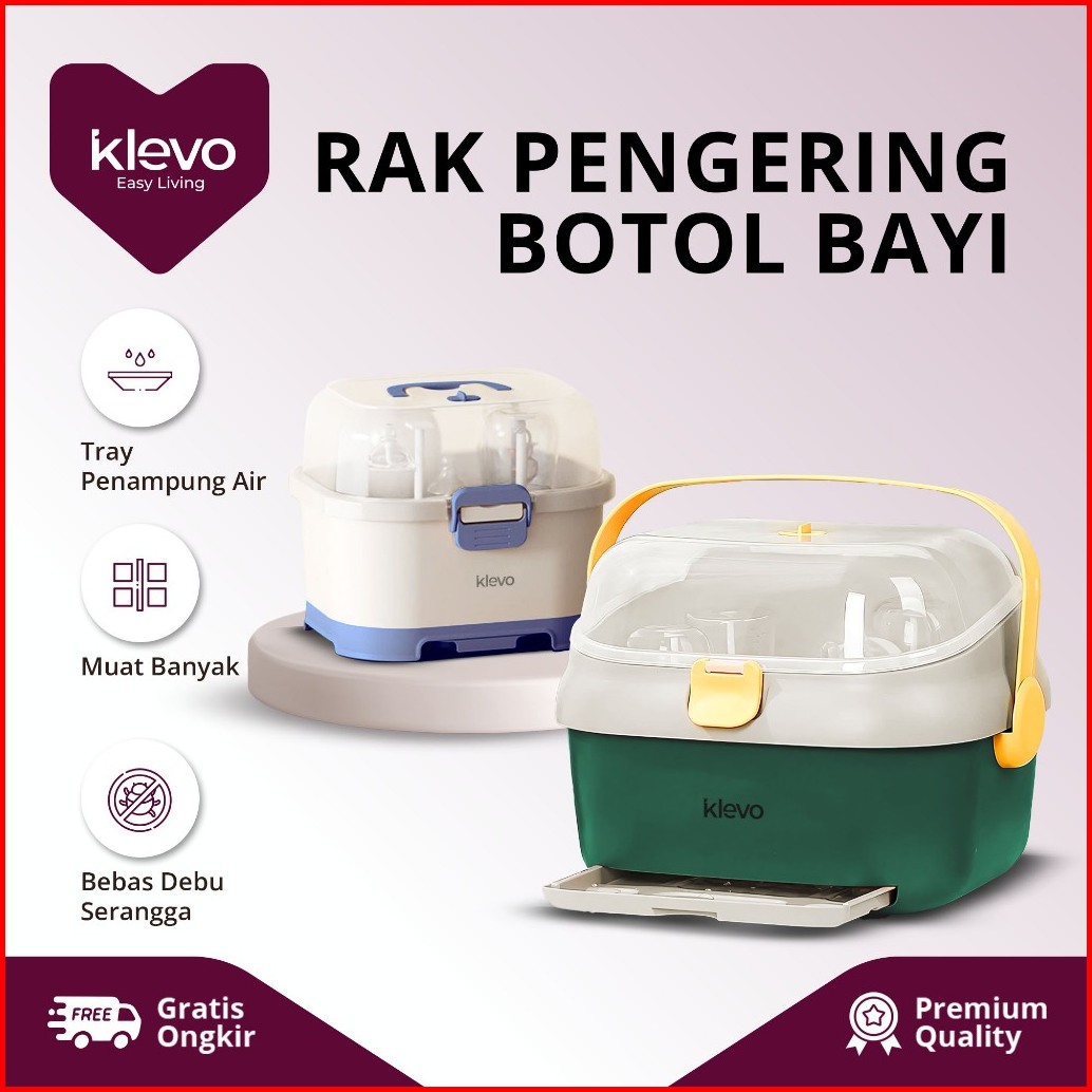 Klevo Rak Pengering Botol Bayi Dengan Penutup Perlengkapan Anak Balita Serbaguna Anti Debu