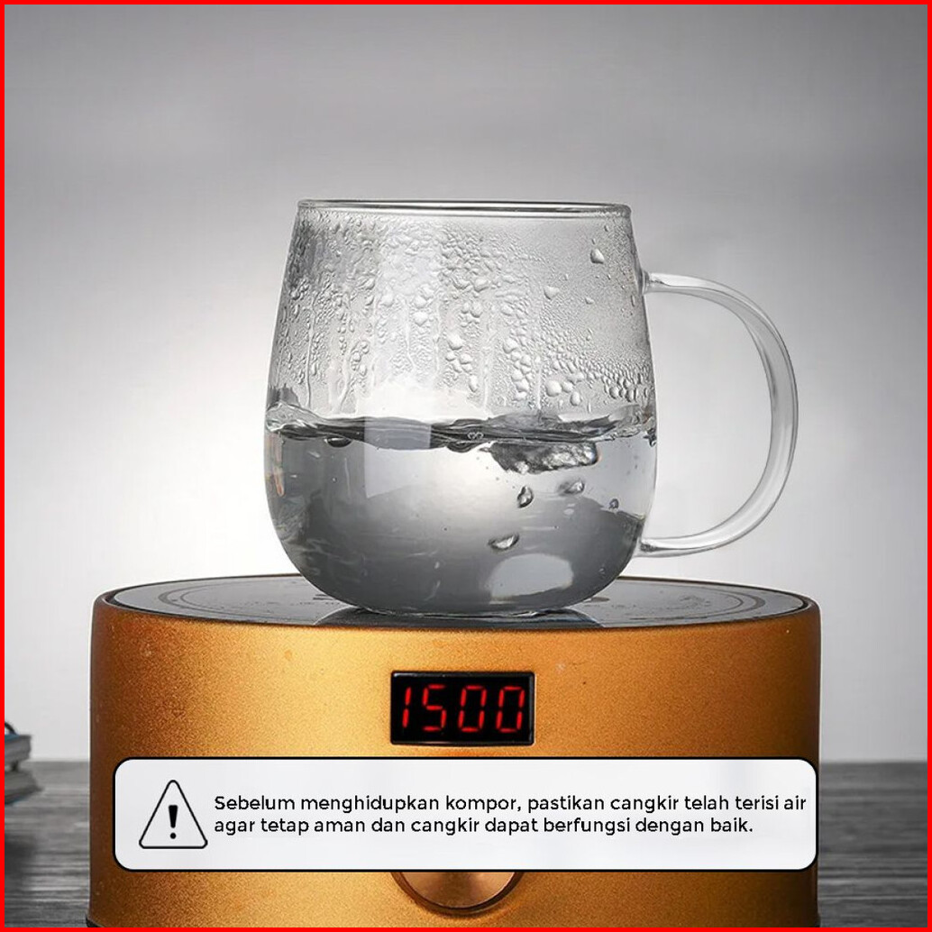 Cangkir Teh Kaca Dengan Infuser Dan Tutup Kayu Mug Tahan Panas Borosilicate Glass 320ml 420ml