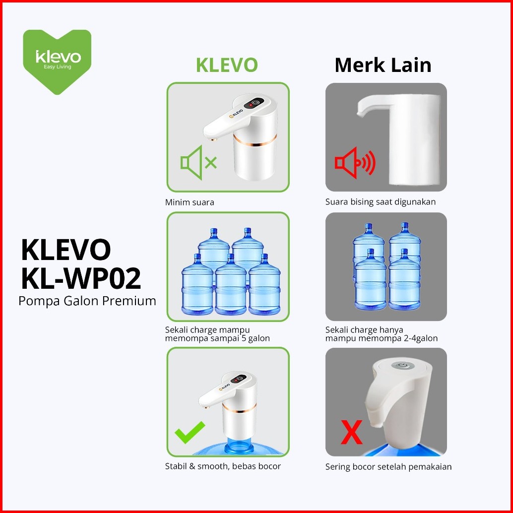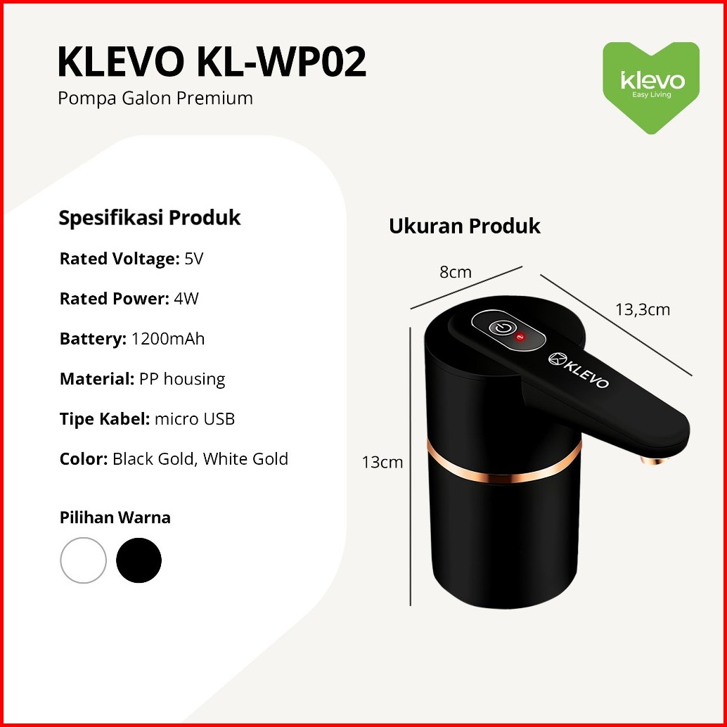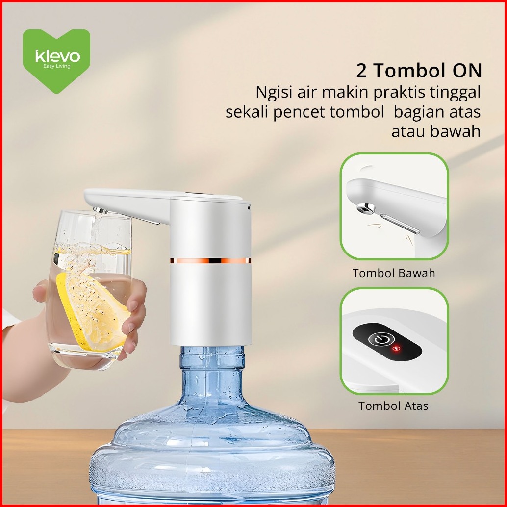Klevo Kl-wp02 Pompa Galon Elektrik Otomatis 2 Tombol Atas Bawah Rechargeable Water Pump Portable