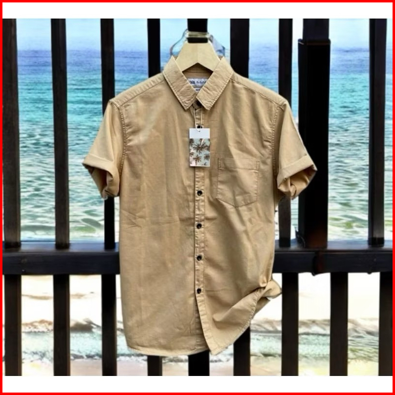 Kemeja Polos Pria Cowo Lengan Pendek Slimfit Hitam Putih Navy Army Maron Sage Putih