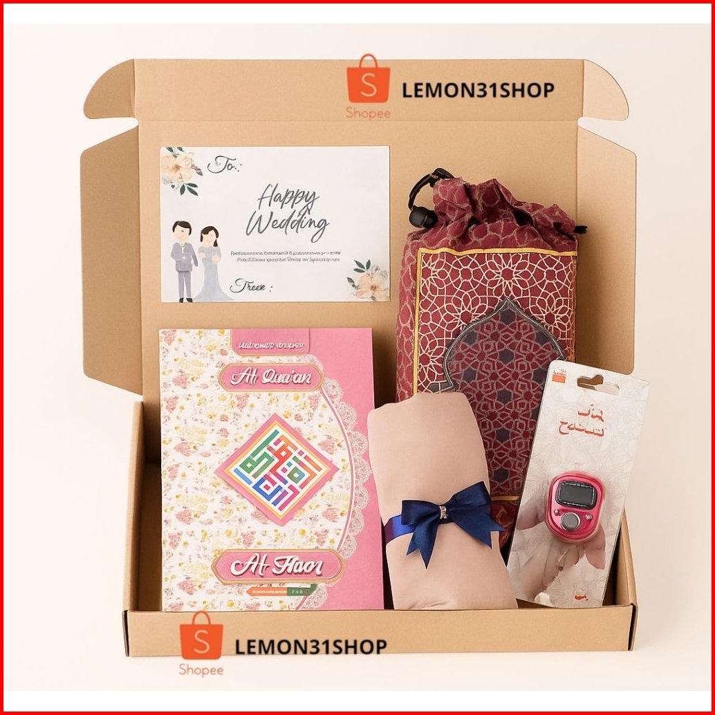 Hampers Alquran Hijab Sajadah Travel Tasbih Digital Tasbih Kayu Souvenir Wedding Umroh Haji Tahlillan Pengajian Kado Ula