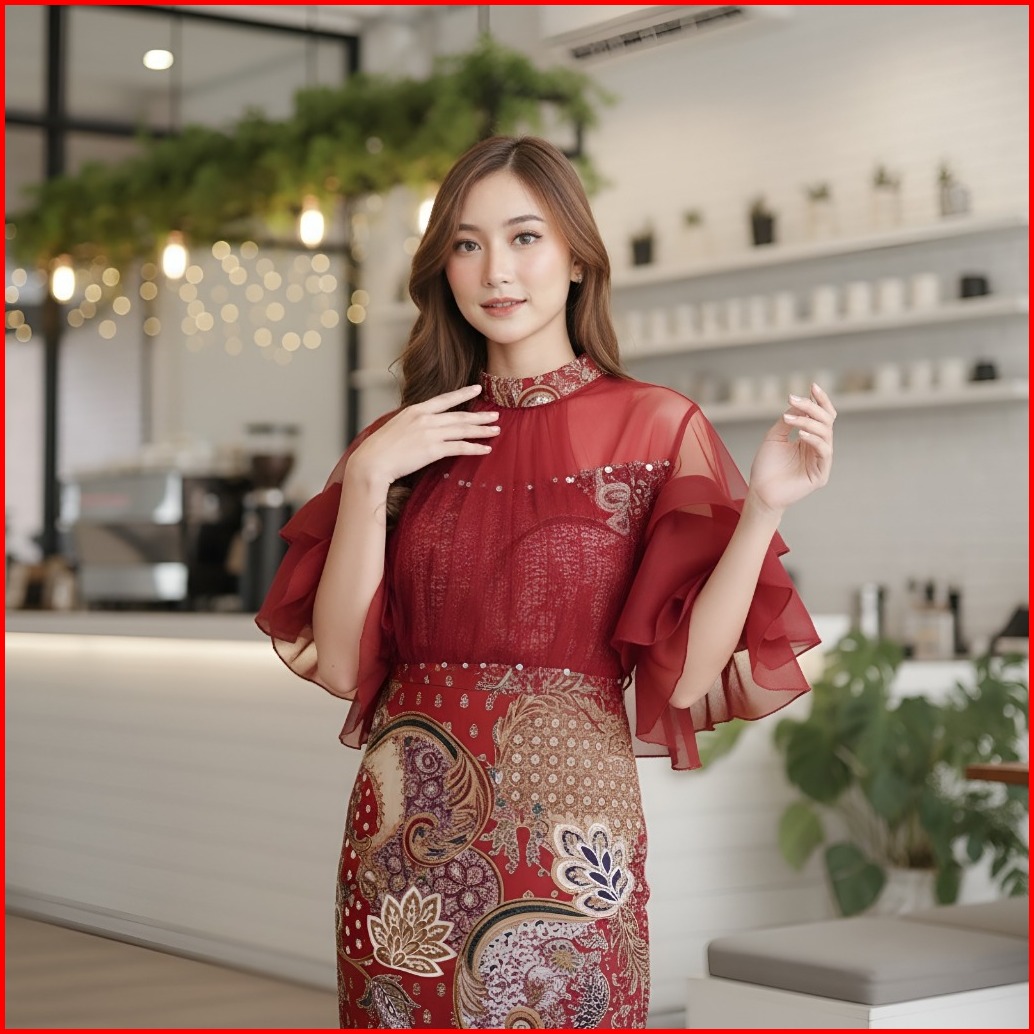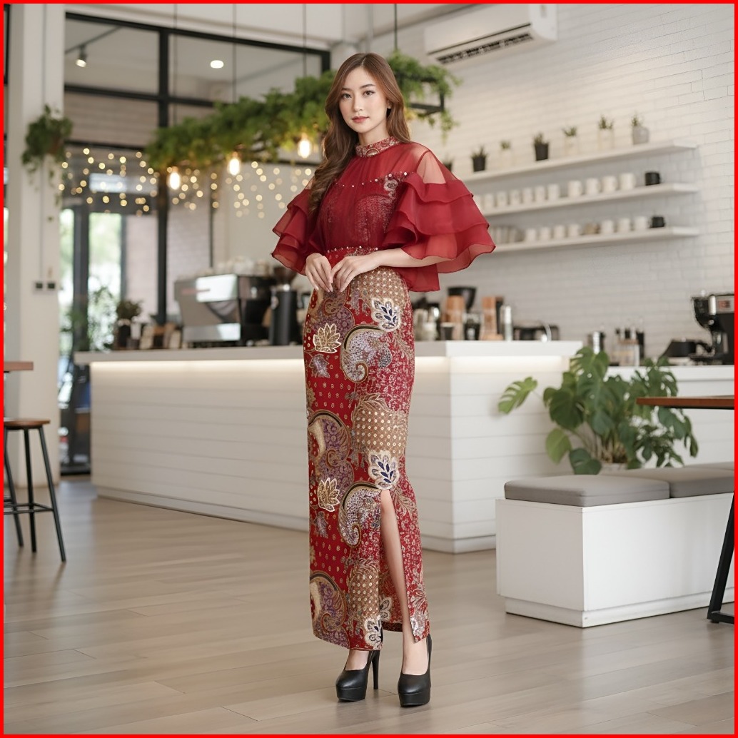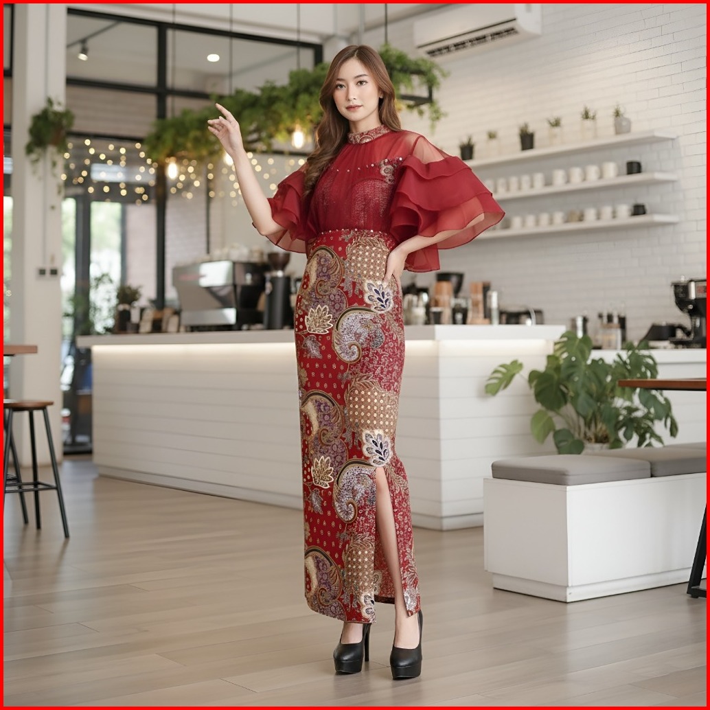 Erlanda M L Xl Xxl Dress Baju Batik Panjang Terbaru Natal Anggun Trend Gaun Pesta Modern Elegan