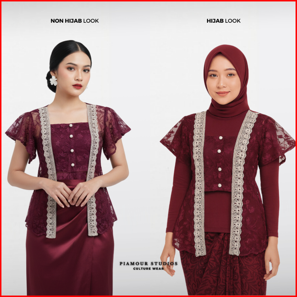 Piamour Hana Kebaya Kutubaru Modern Brukat Lace Tile Premium Kekinian Elegan Baju Kondangan Wanita One Set Rok Lilit