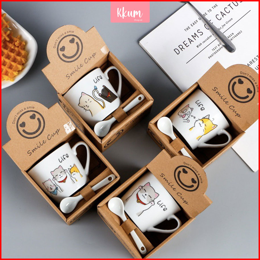 Gelas Kopi Keramik Set Sendok Handel Mug Set Mug Souvenir Hampers Premium