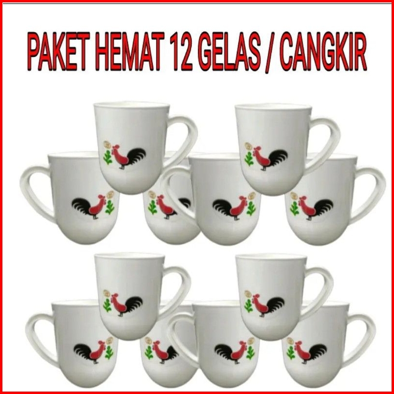 Paket Hemat Gelas Cangkir Ayam Jago Isi 12 Pcs Berat 1 Kg