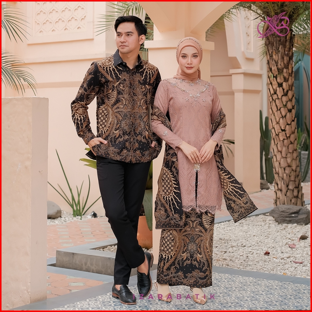 Izarabatik - Calista Mocca Setelan Baju Kebaya Batik Modern Couple Wisuda Lamaran Kondangan Tunangan