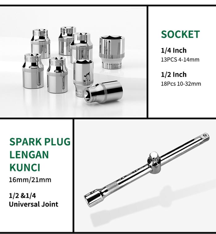 KUNCI SOK SET ISKU KUNCI SOKET LENGKAP KUNCI RING PAS TOOLBOX 61PCS - 61PCS-24GIGI