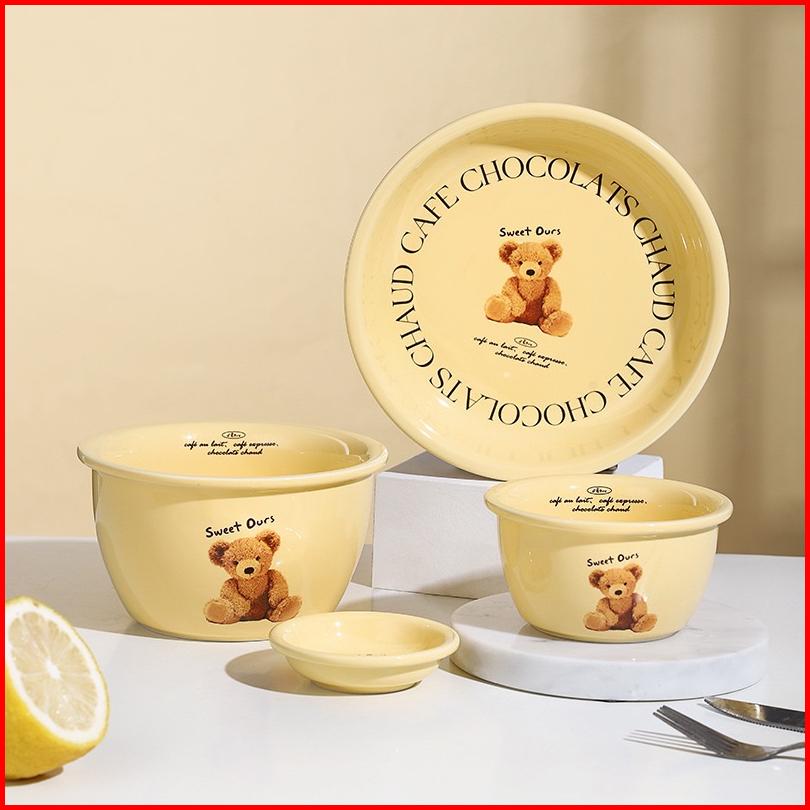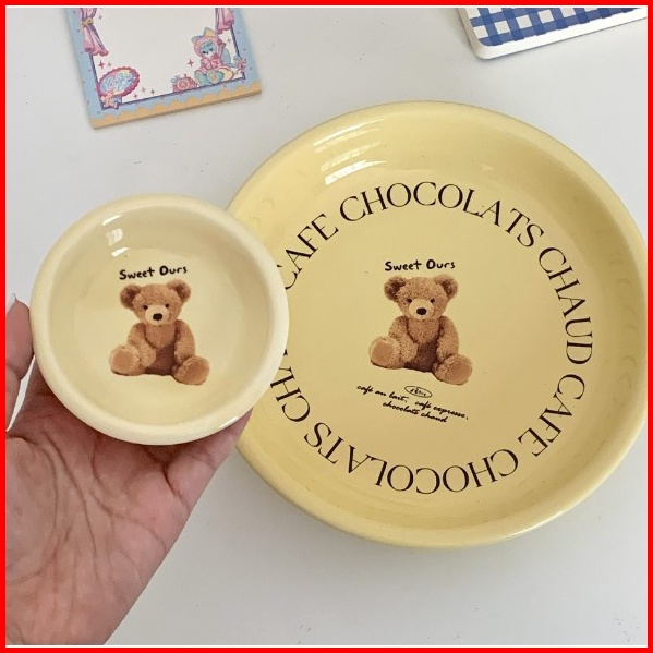 Siggi Bear Korean Aesthetic Plate Bowl Piring Korea Aesthetic Beruang Mangkok Korea Piring Keramik