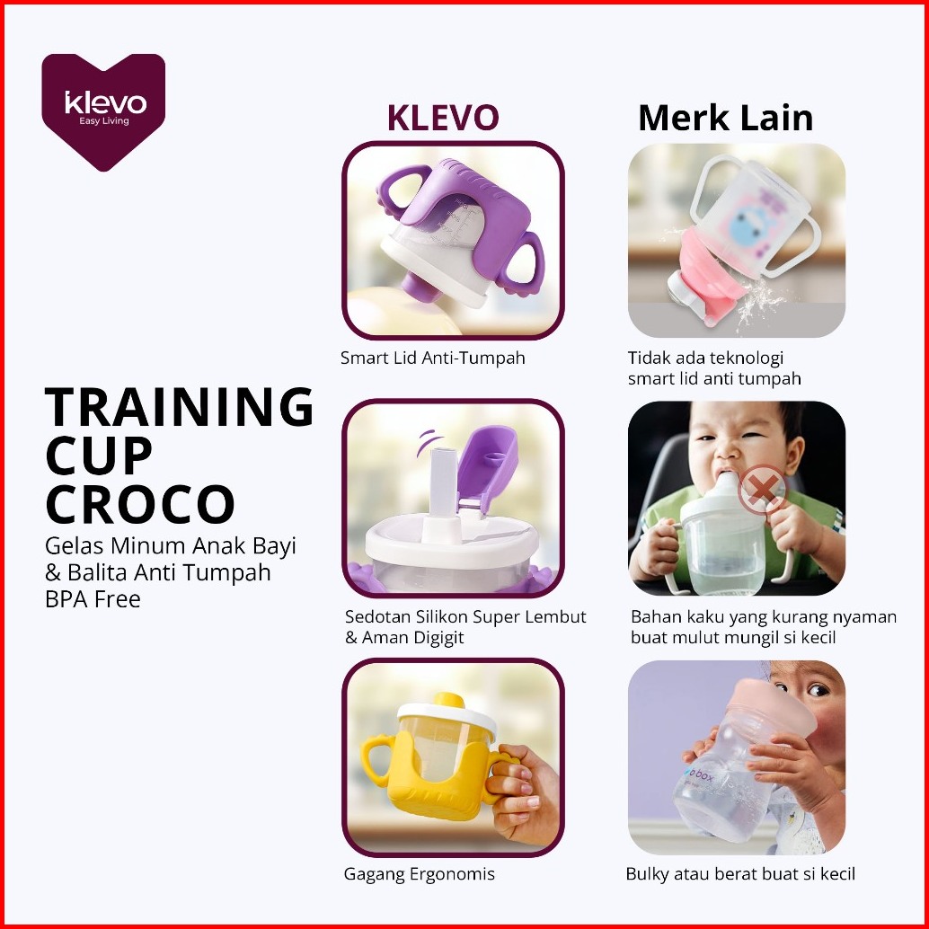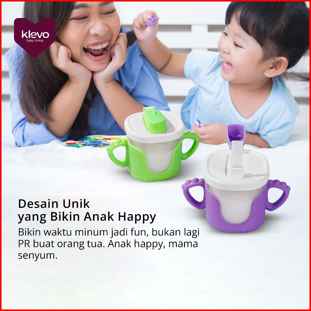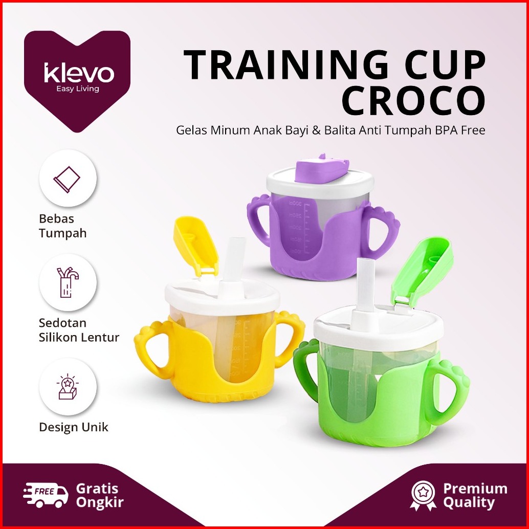 Klevo Croco Training Cup 330ml Gelas Minum Lucu Anak Balita Sedotan Silikon Anti Tumpah Bpa Free
