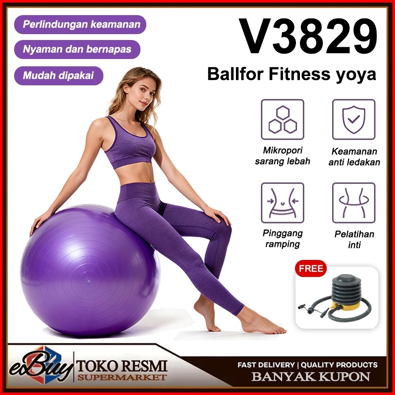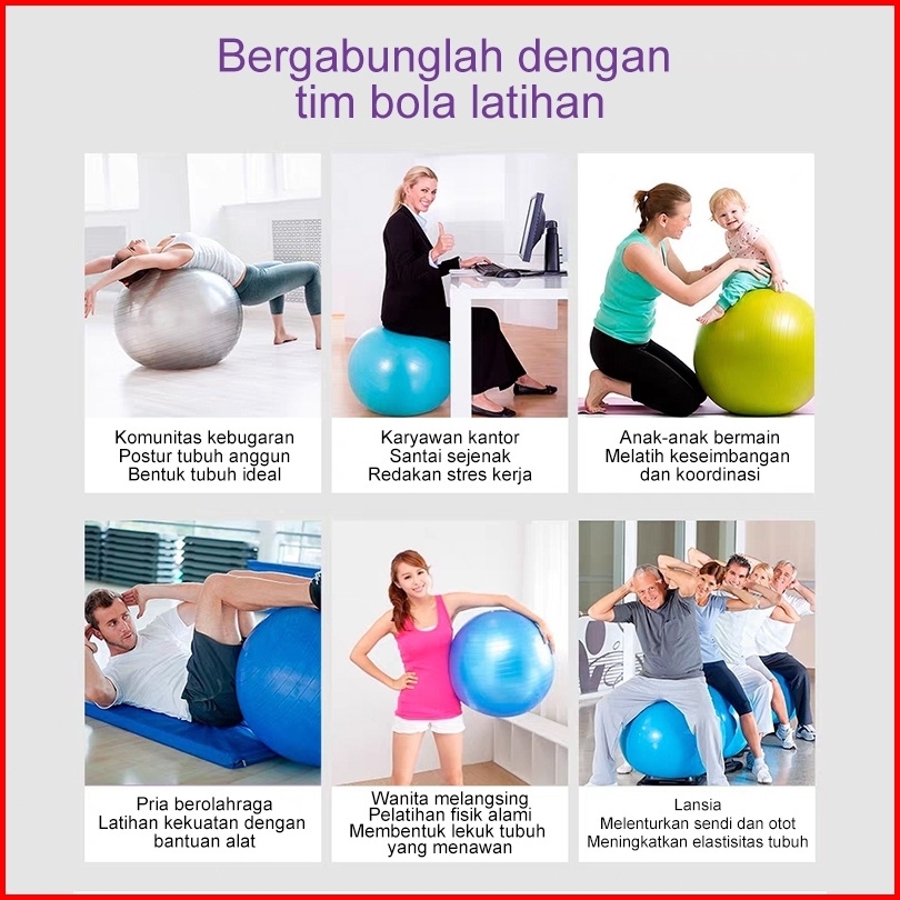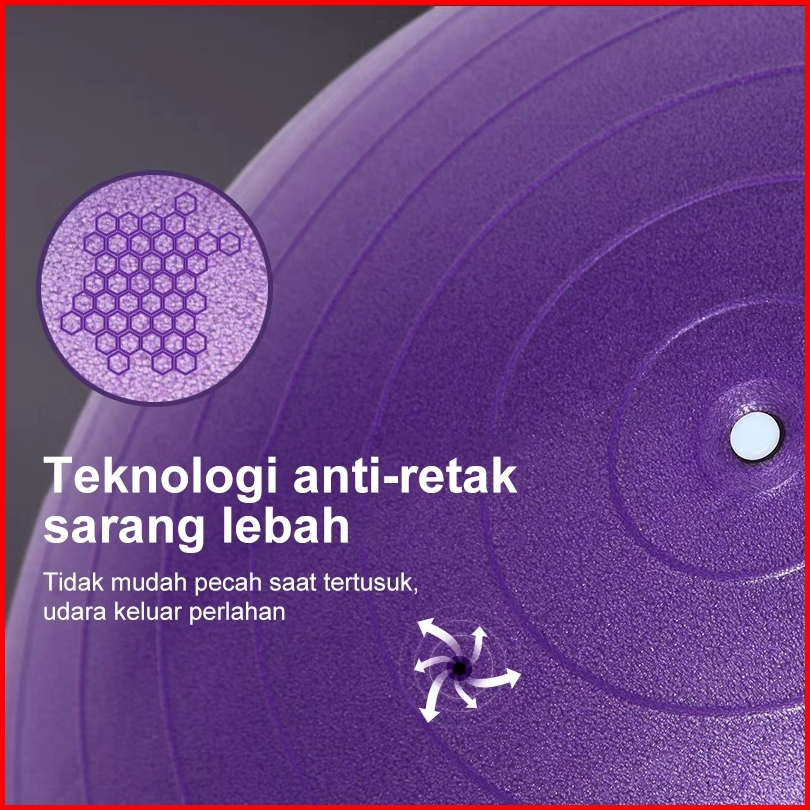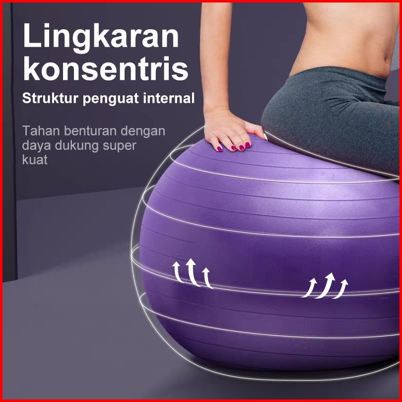 Bola Yoga Gym Fitness 55 65 75cm Anti Slip Aman - Paket Lengkap Pompa Kaki Penarik Udara Penutup Lubang Bola Latihan Keb