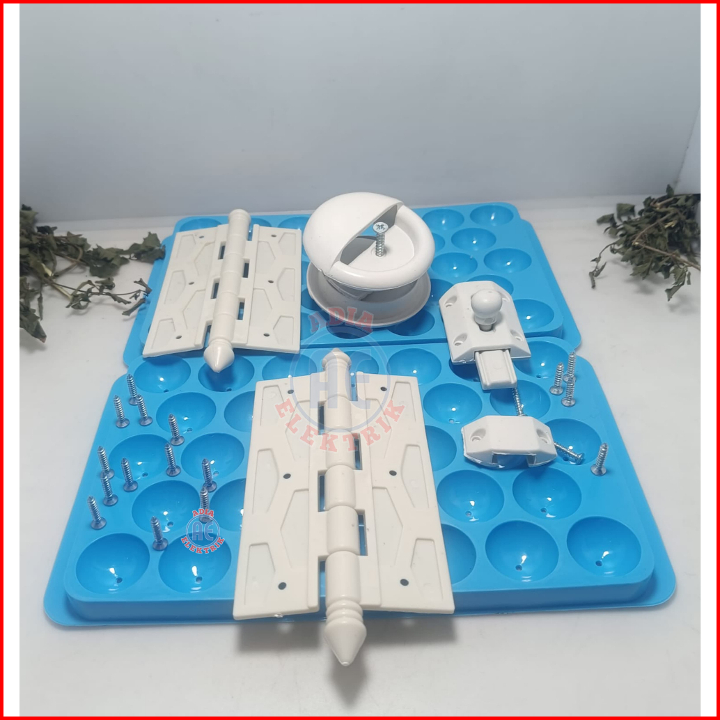Paket Engsel Grendel Tarikan Pvc Engsel Pintu Plastik Kamar Mandi 1 Set Engsel Pintu Pvc Selot Tarikan Skrup Baud