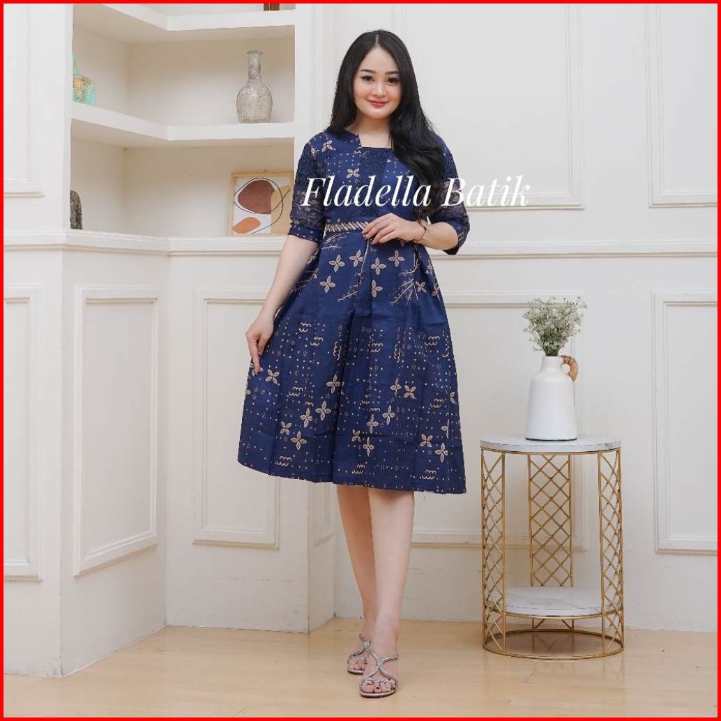 Dress Batik Pesta Mewah Couple Navi S M L Xl Xxl 3xl