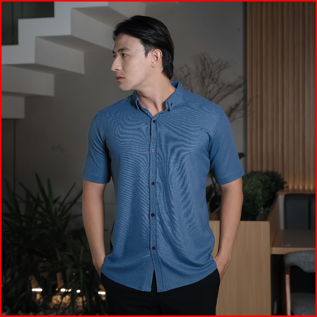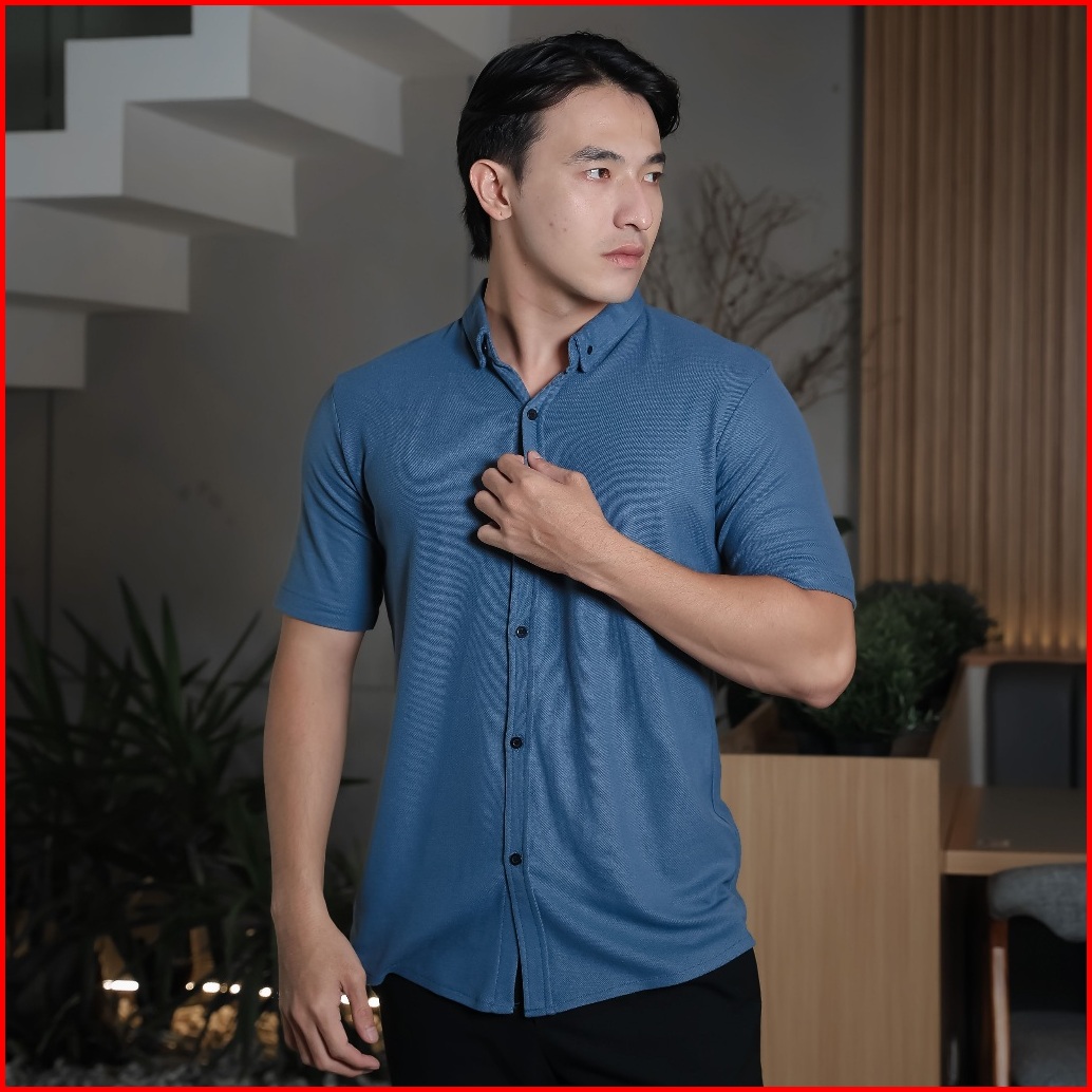 Stylelaki Lapique - Kemeja Denim Pria Formal Lengan Pendek Slim Fit Anti Kusut Nyaman Dan Lembut