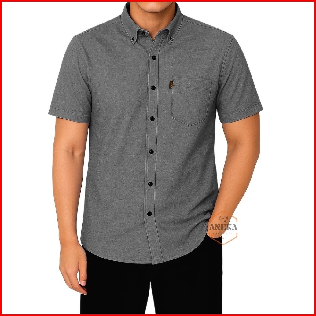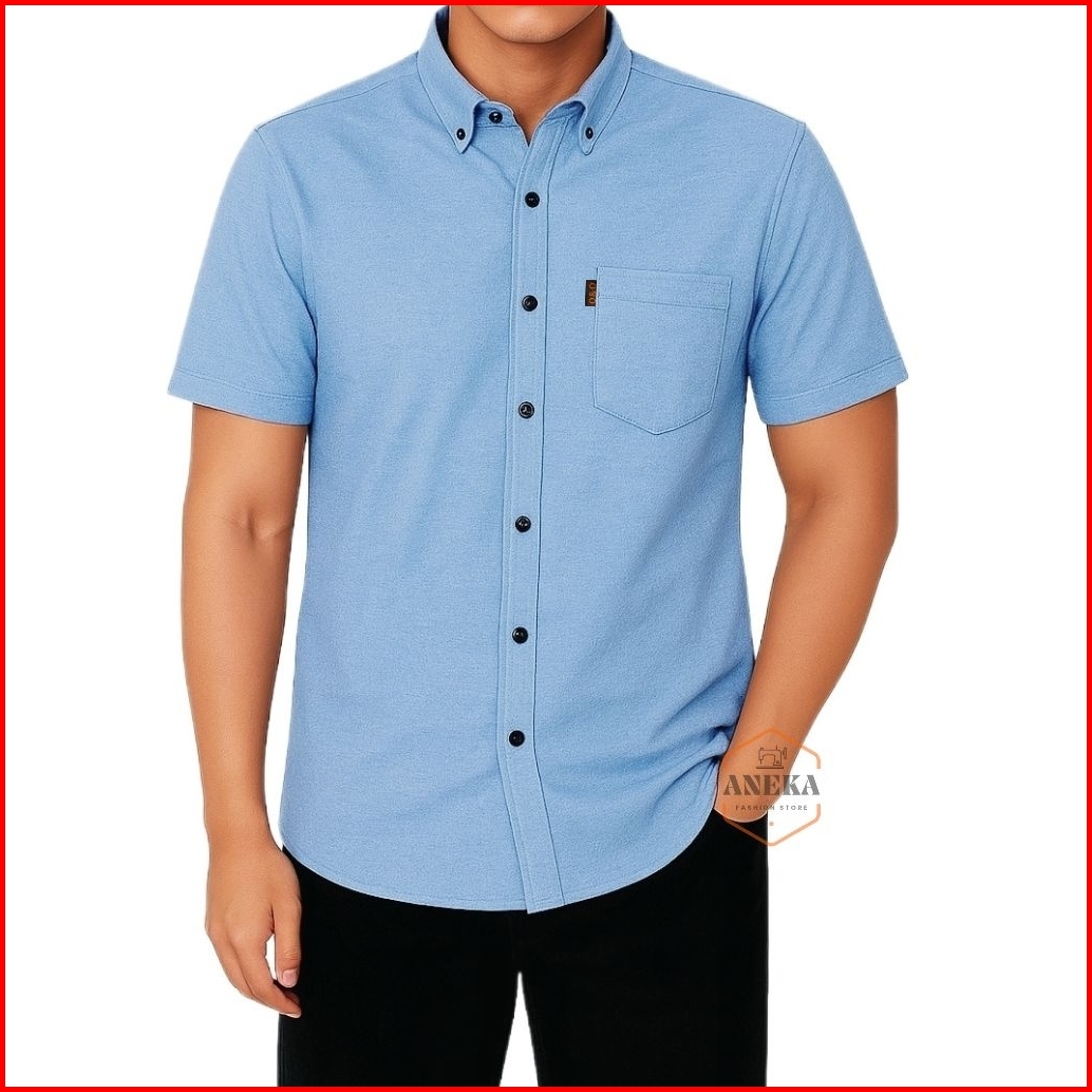 Kemeja Polos Pria Lengan Pendek Slimfit Oxford Biru Muda