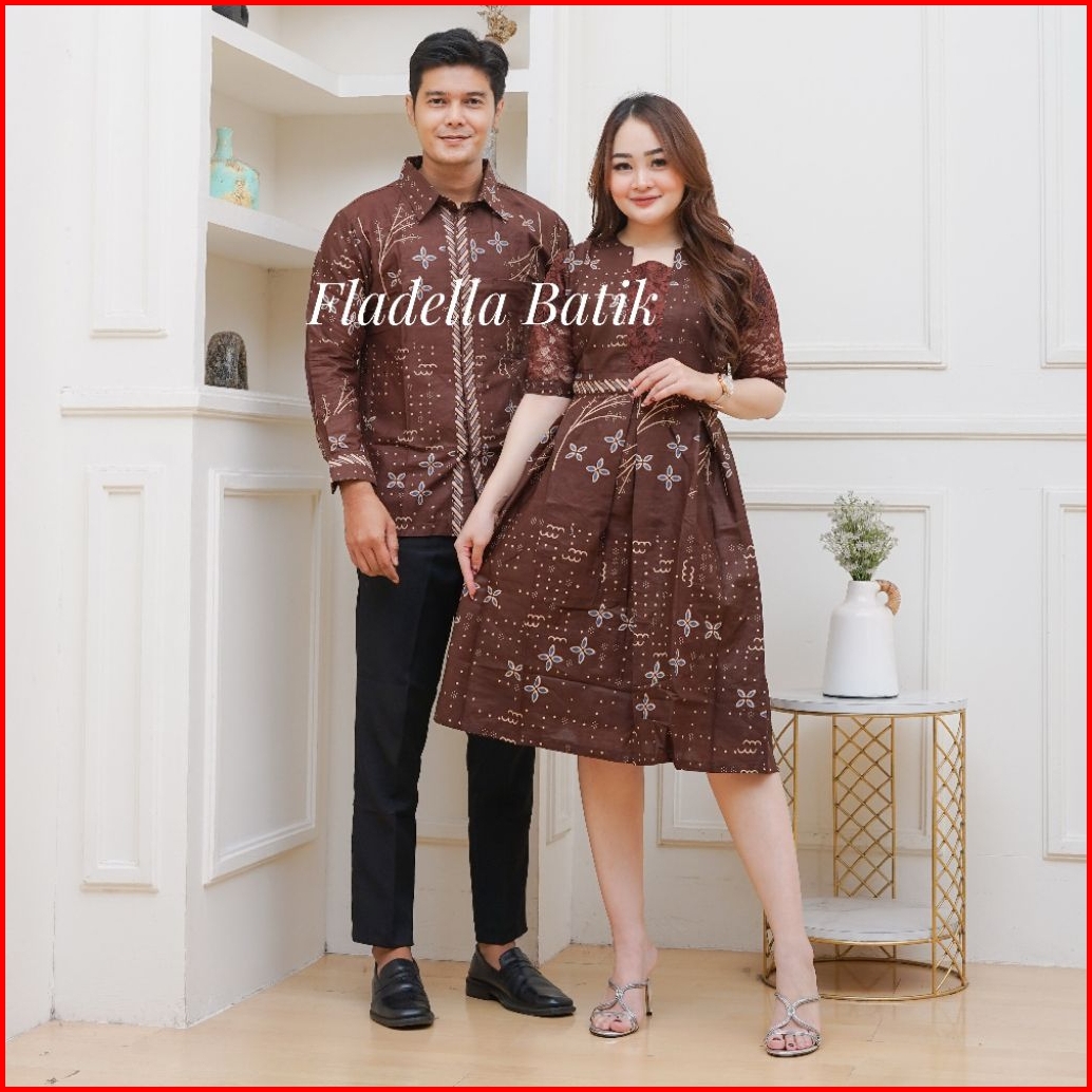 Dress Batik Pesta Mewah Coklat Couple S M L Xl Xxl 3xl