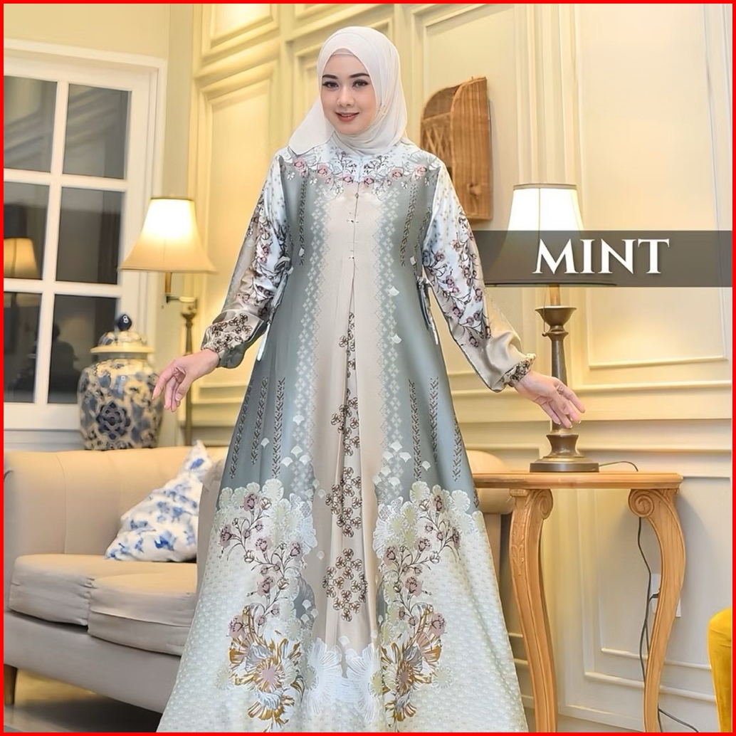 Gamis Couple Sarimbit Motif Bunga Medina Silk Premium Terbaru Elegan Dress Kondangan Sage Nevy Jumbo