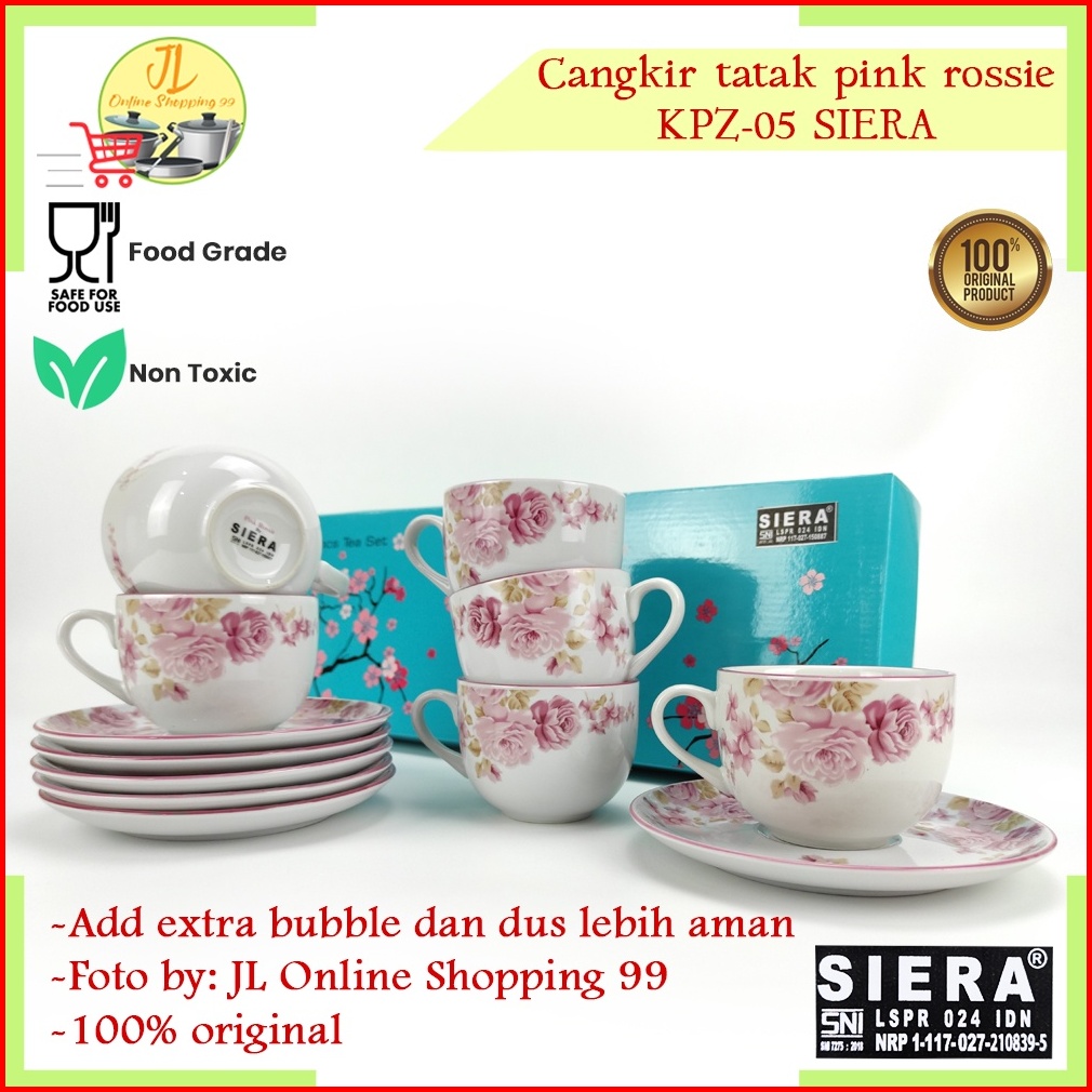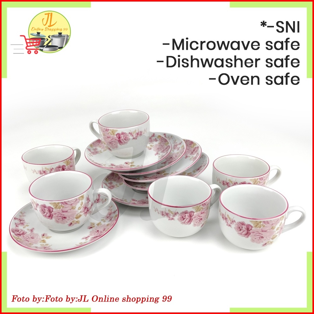 Cangkir Coffee Tea Set 6 Pasang Motif Pink Rossie Siera Kpz-05 Cangkir Teh Tea Set Coffee Set Cup And Saucer